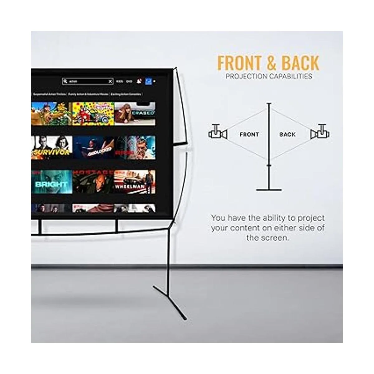 Resistente y fácil de montar: esta pantalla de proyector de película viene con todo lo que necesitas para montarla y se puede configurar fácilmente en menos de 10 minutos por una persona. Una vez configurado, el sistema de soporte rígido garantiza una estabilidad extrema.