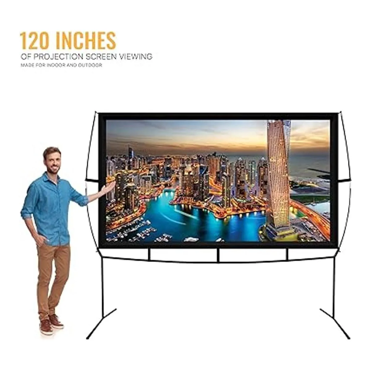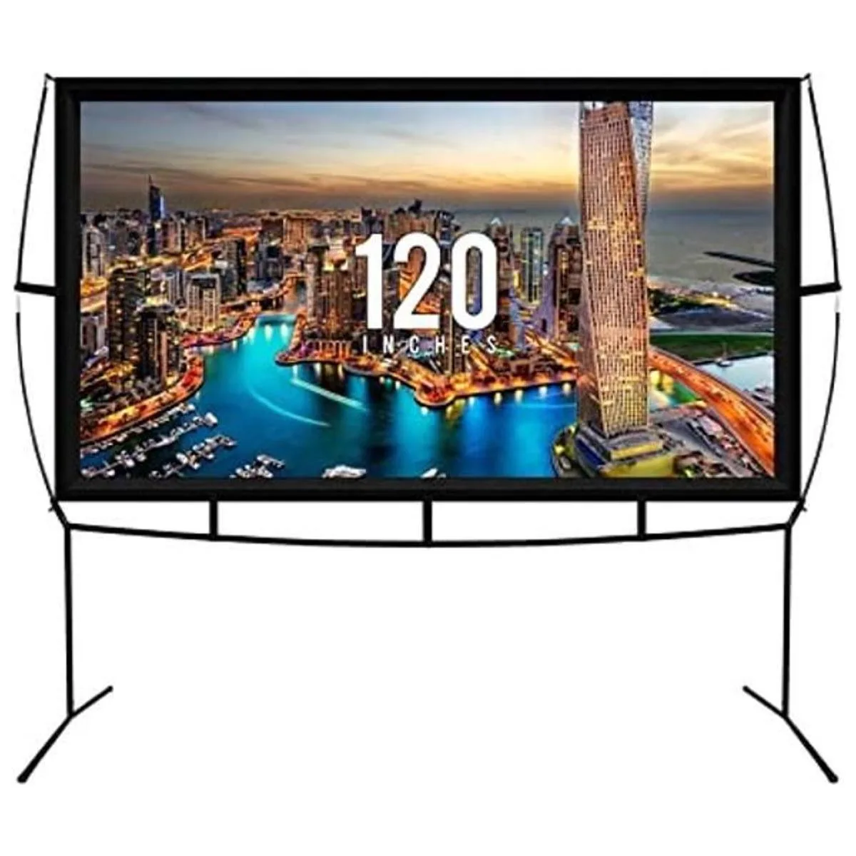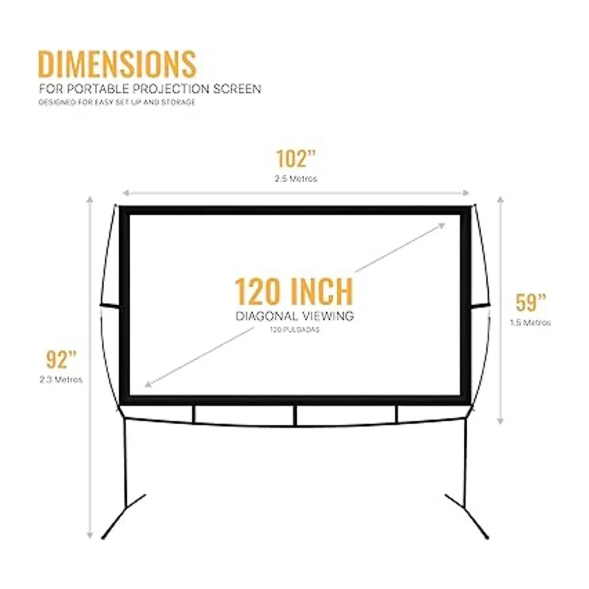 KHOMO GEAR Pantalla de proyector portátil de 120 pulgadas con soporte, pantalla de proyector para exteriores e interiores para noches de cine, cine en casa y presentaciones, pantalla de proyección frontal y trasera