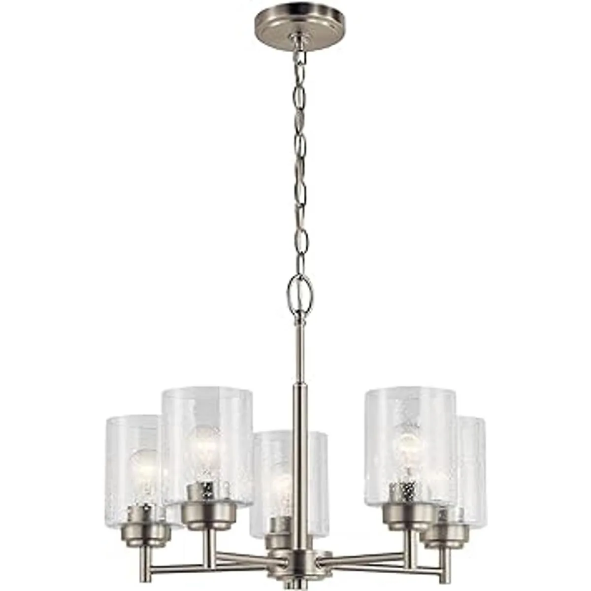 KICHLER Winslow Candelabro de 5 luces de 19.75 pulgadas con vidrio sembrado transparente en níquel cepillado