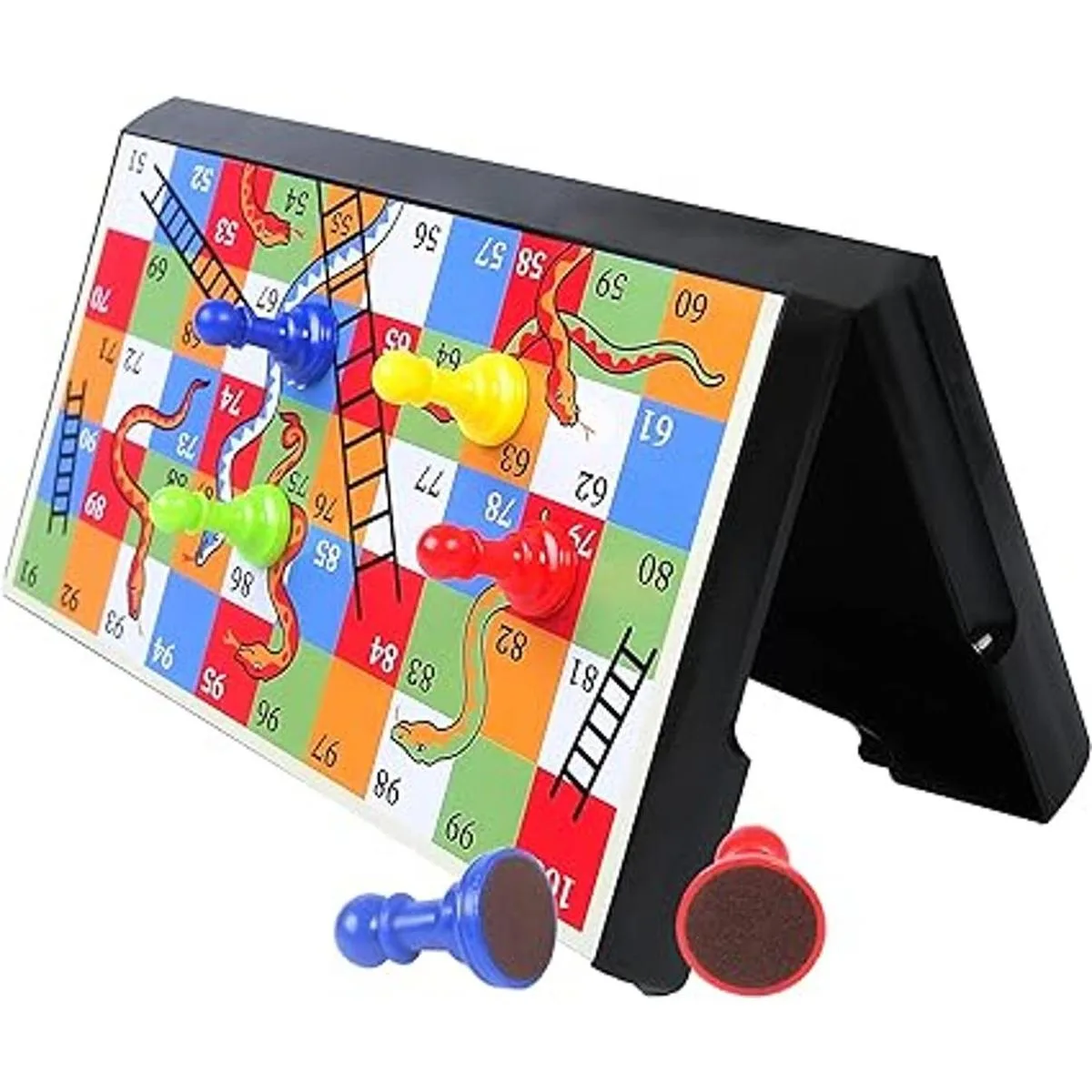 KIDAMI Juego de serpientes y escaleras magnéticas con caja de almacenamiento, diseño plegable y peso ligero, regalo para niños y adultos.
