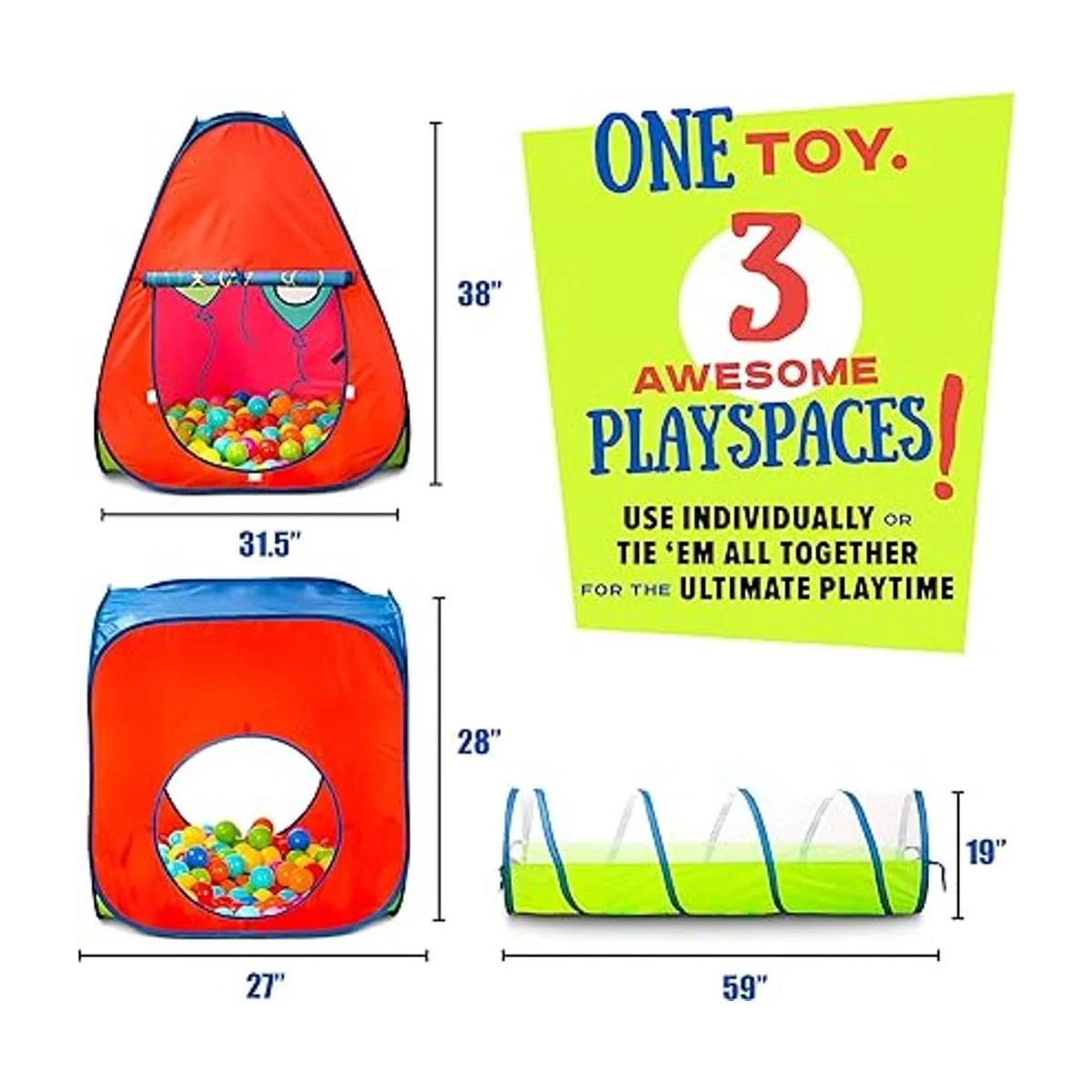 Kiddey Juego de 3 piezas de tienda de campaña emergente para niños y niñas, bebés y mascotas, con túnel de gateo y alberca de pelotas, duradera,para uso en interiores y exteriores, con funda de transporte