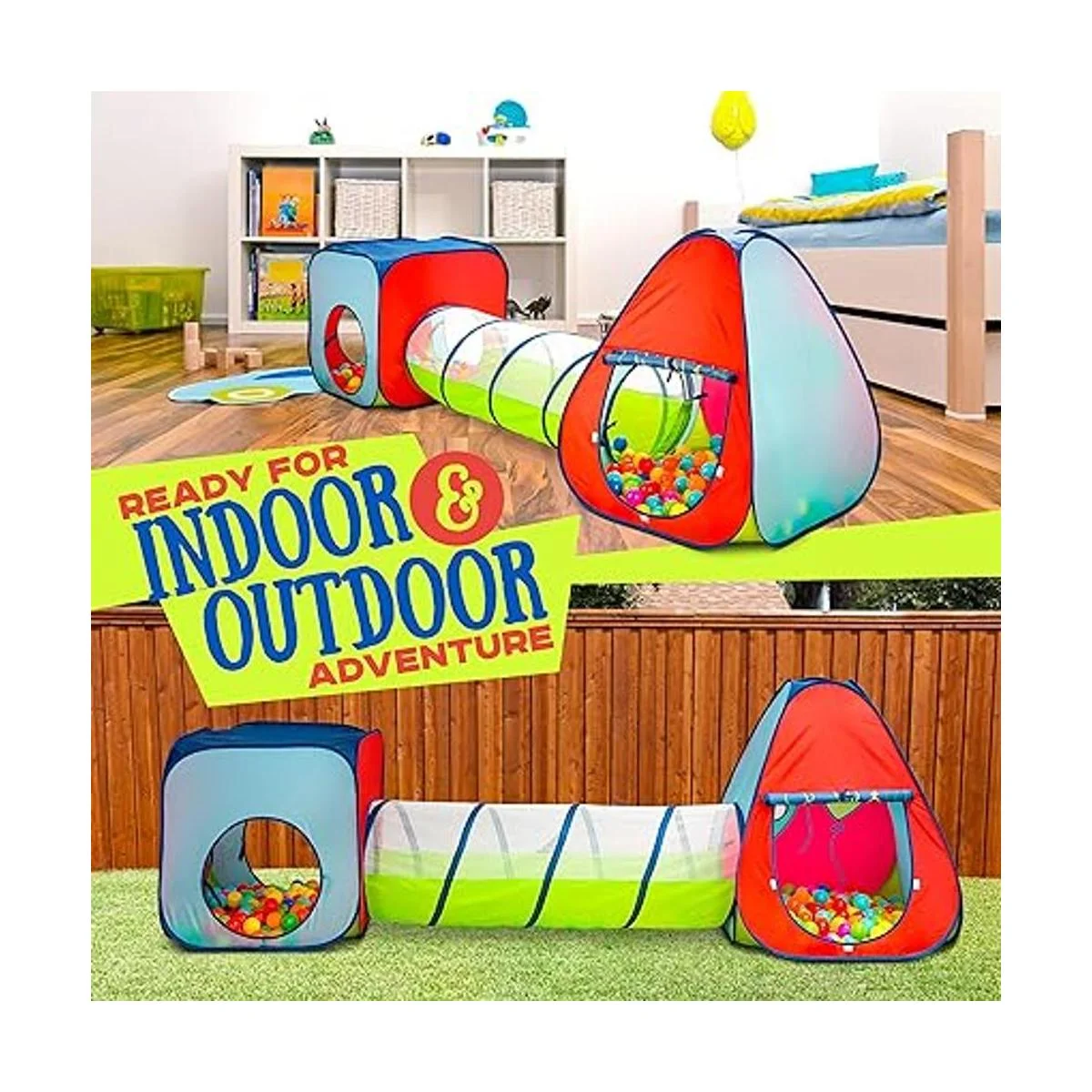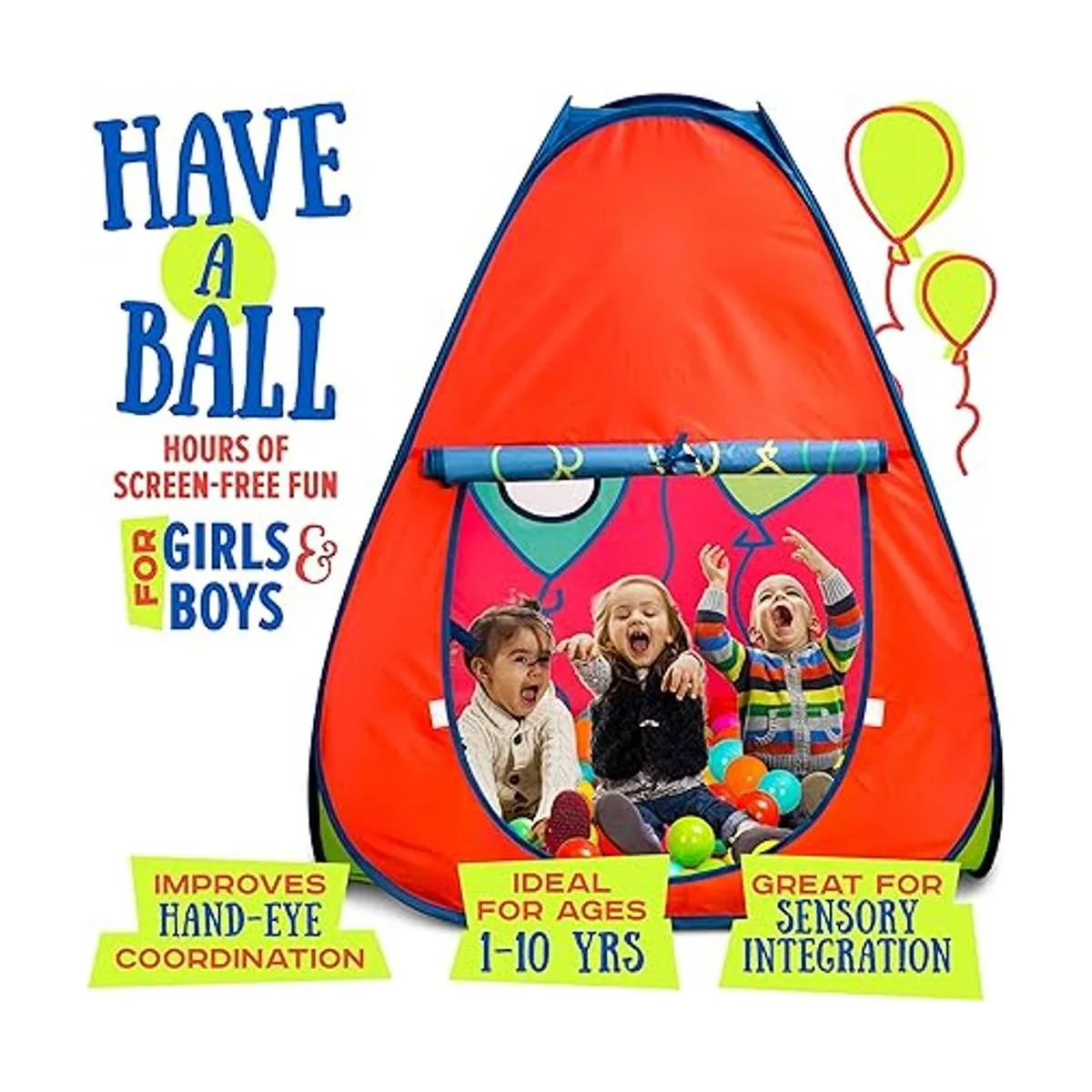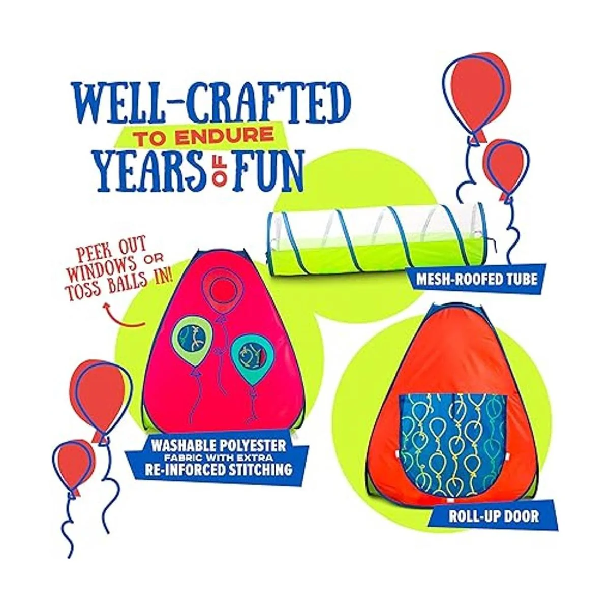 Muy fácil de instalar y jugar: acompañado de instrucciones fáciles de seguir idioma español no garantizado, los componentes individuales son sorprendentemente fáciles de armar y se pueden utilizar tanto en interiores como en exteriores. Viene con una funda de transporte que hace que sea fácil de mover la tienda de campaña junto con estacas que se pueden utilizar para asegurar la casa de juegos al suelo. Pelotas no incluidas.