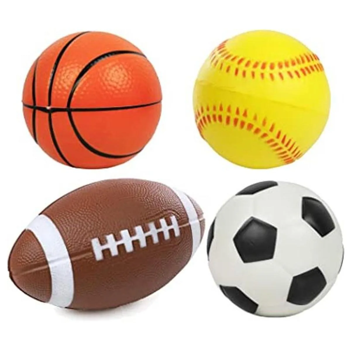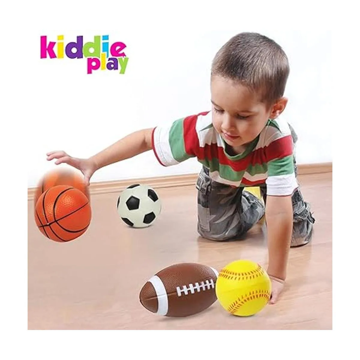 Kiddie Play Juego de 4 pelotas para niños de 1 a 3 años, pelota de fútbol suave de 4 pulgadas, béisbol, baloncesto y fútbol de 6 pulgadas para niños