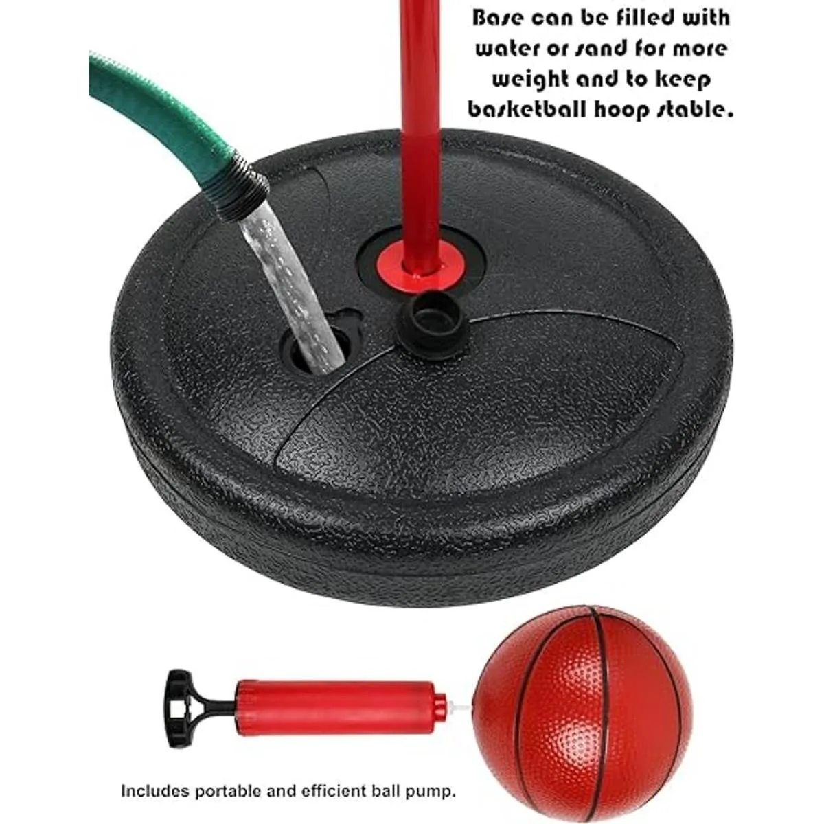 La base se puede llenar con arena o agua para mayor estabilidad