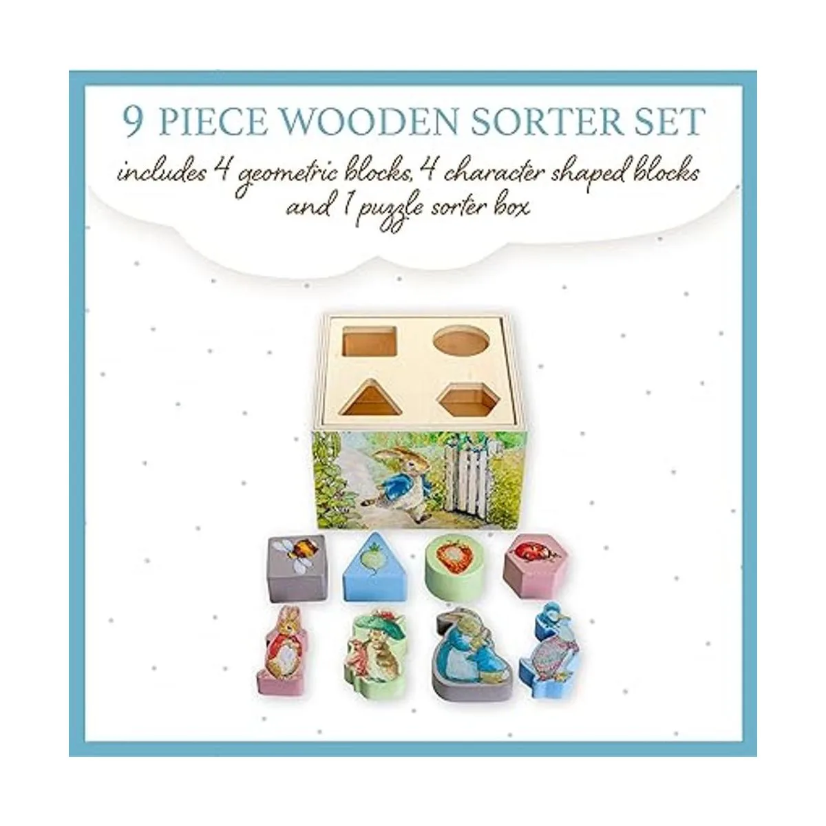 KIDS PREFERRED Beatrix Potter Peter Rabbit Clasificador de formas de madera para niños pequeños, incluye 8 piezas, multicolor