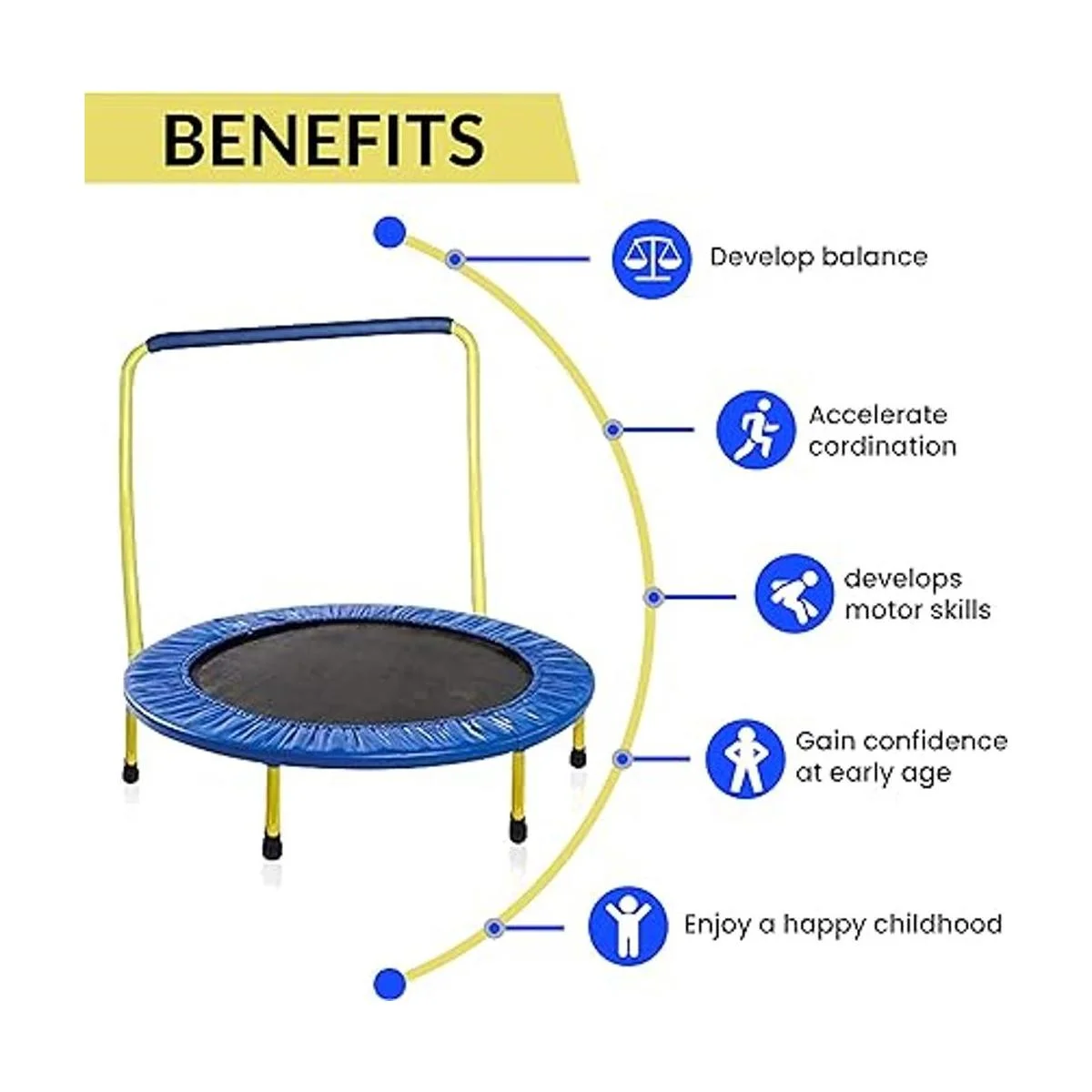 Kids Trampoline Portable Foldable 36 Inch Round Jumping Mat for Toddler Durable Steel Metal Construction Frame with Padded Frame Cover and Handle Bar