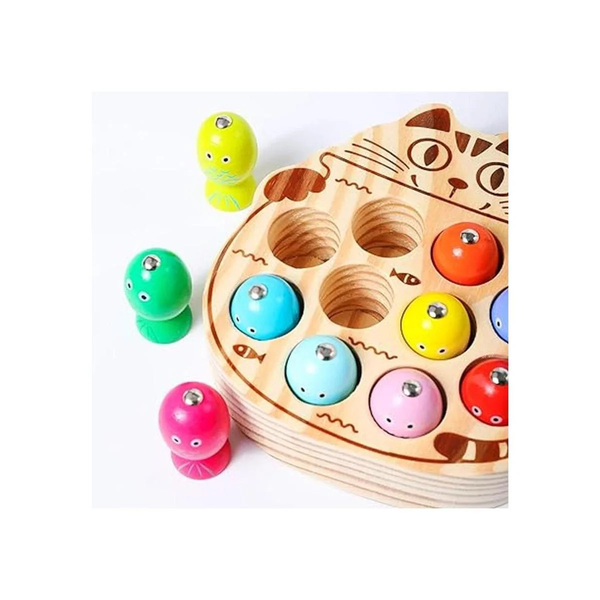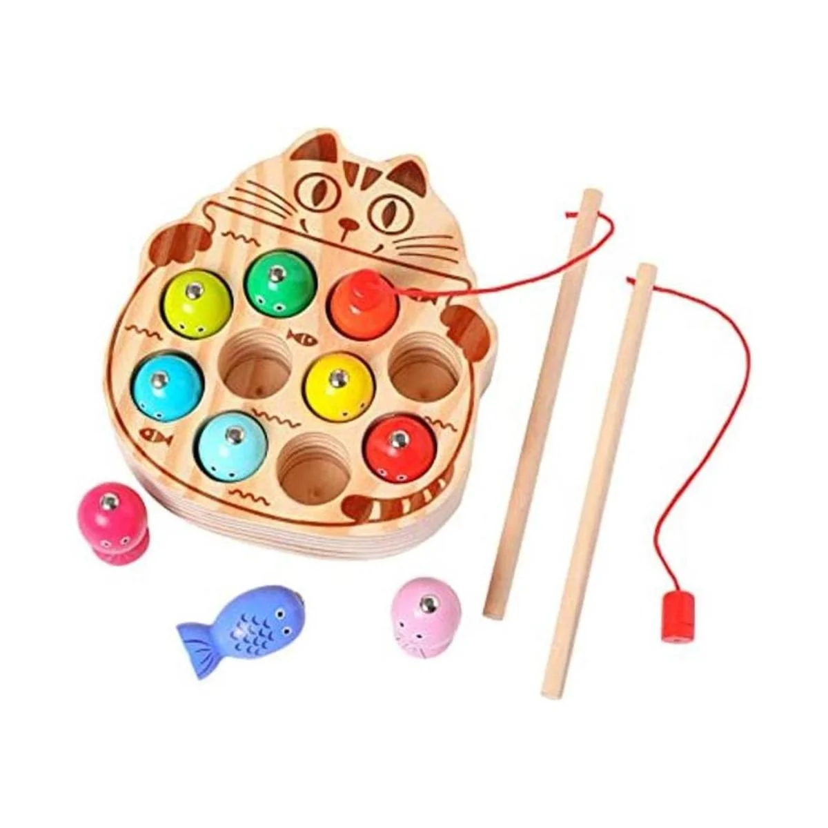 Kidus Montessori Juego de pesca magnético de madera para niños pequeños de 1 a 3 años, habilidades motoras finas, aprendizaje temprano, manos, juguete de cooperación para niños y niñas, gran regalo de cumpleaños