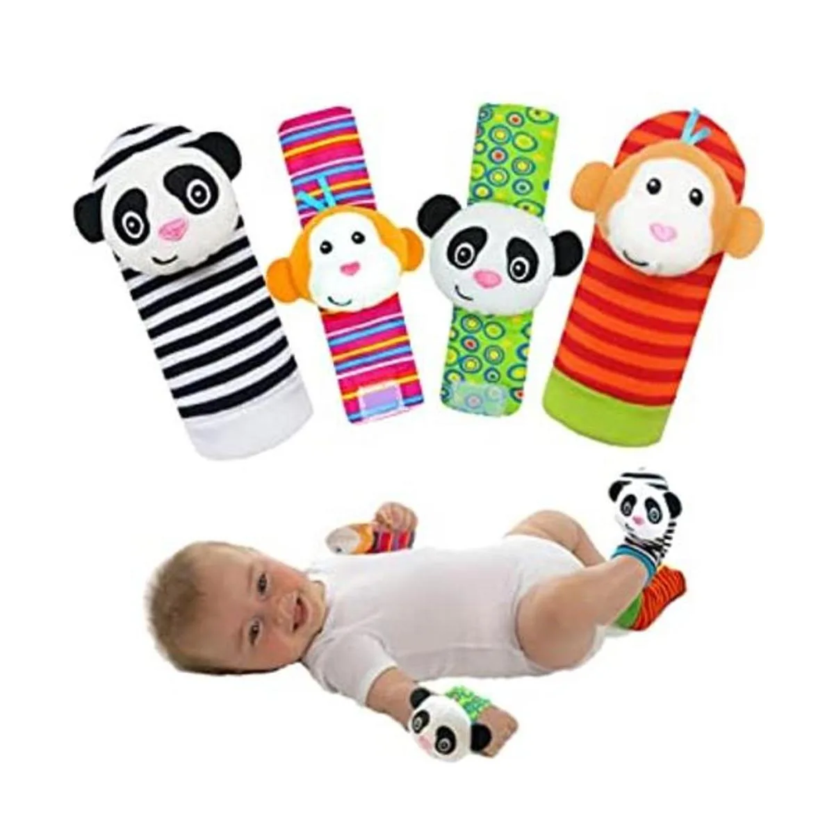 Kiesyo Juguetes para bebés de 0, 3, 6, 12 meses, sonajeros de muñeca para bebés, calcetines de sonajero para pies, muñequeras de mano, sonajeros, piernas, tobillo, pies, juguetes sensoriales para bebés recién nacidos