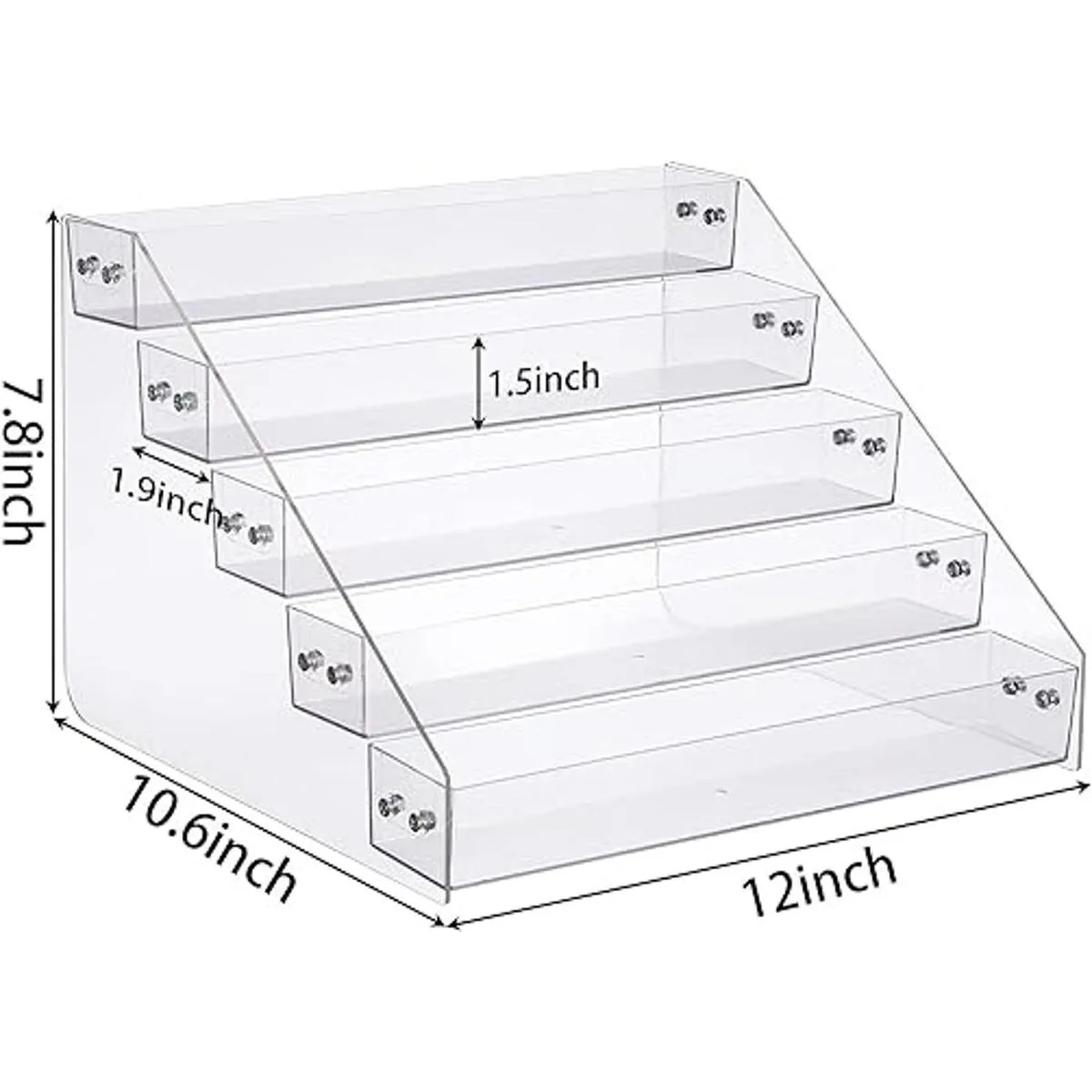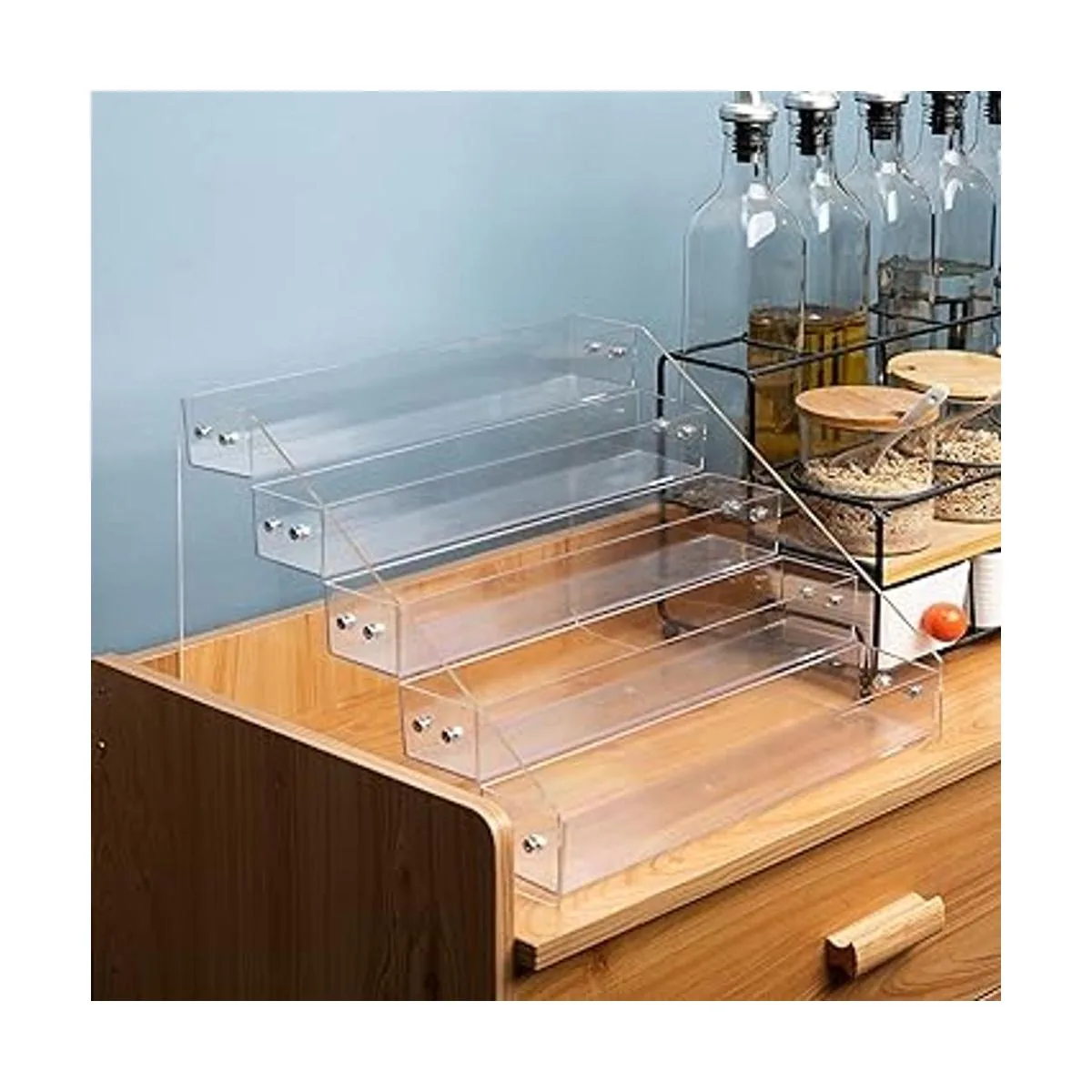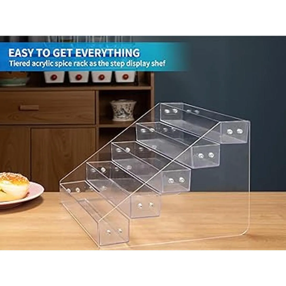 Kihor Estante de especias escalonado, acrílico, estante de especias para encimera, gabinete, despensa, almacenamiento de cocina, 5 niveles