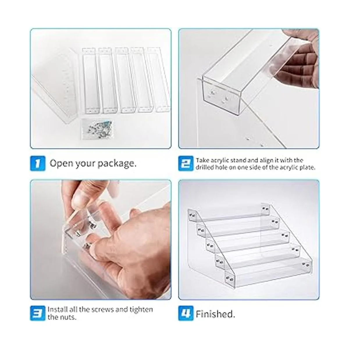 Seguro y duradero: el especiero escalonado está hecho de placa acrílica, que no contiene BPA, por lo que se puede utilizar de forma segura en tu cocina. La placa acrílica tiene las características de alta dureza al mismo tiempo, se puede colocar muchas botellas de condimento durante muchos años sin deformación.