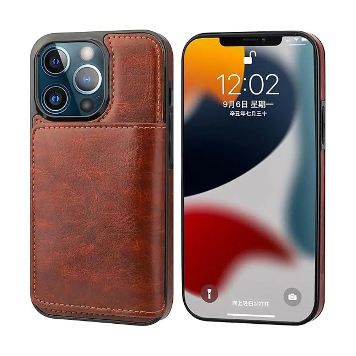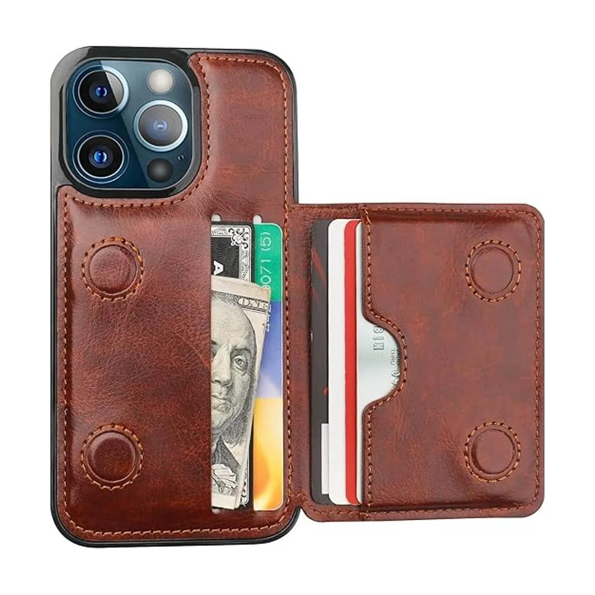 KIHUWEY Compatible con iPhone 13 Pro Funda tipo cartera para tarjetas de crédito, soporte de cuero de primera calidad, duradero, a prueba de golpes, funda protectora para iPhone 13 Pro de 6.1 pulgadas marrón