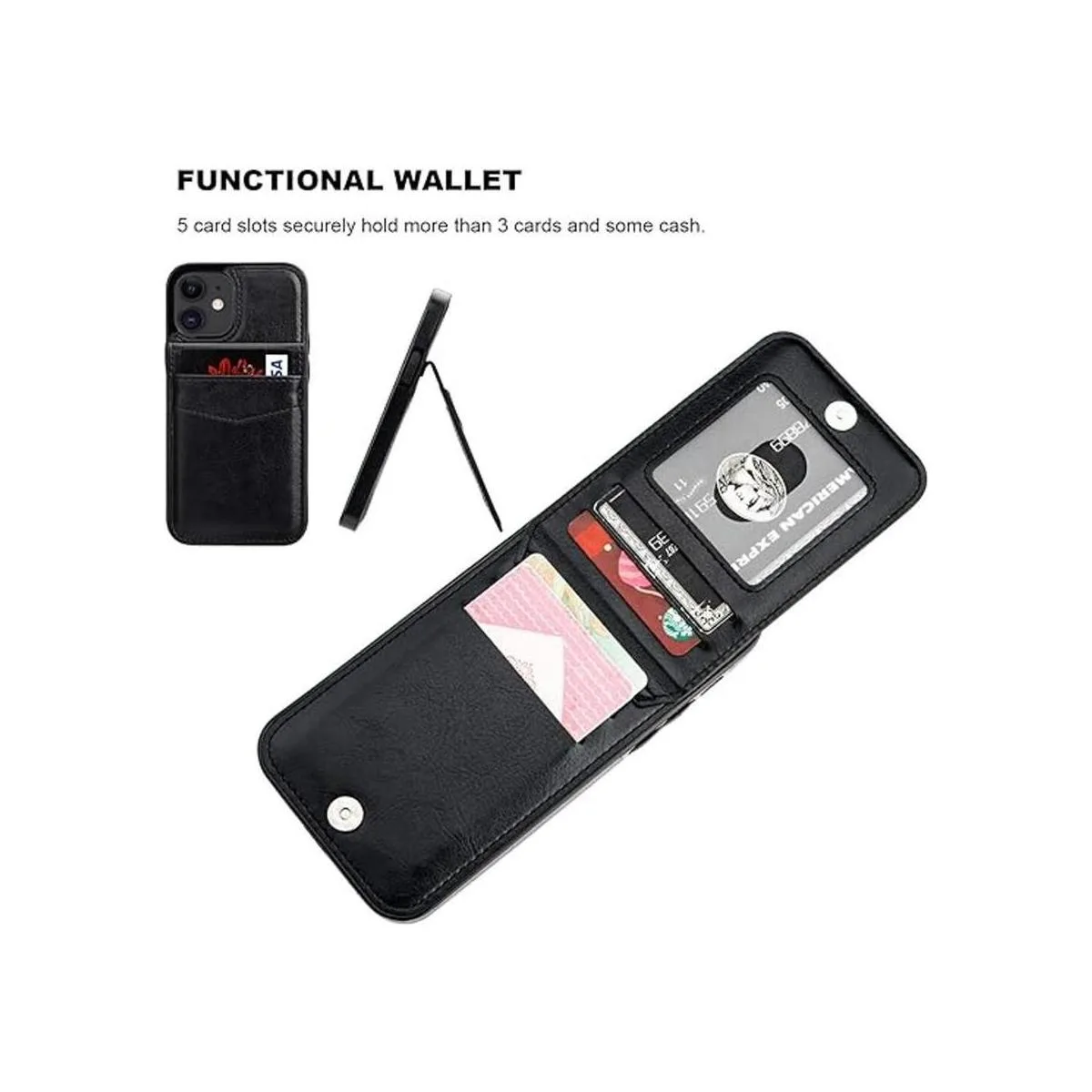 Cartera funcional: 5 ranuras para tarjetas para guardar de forma segura más de 3 tarjetas y algo de dinero en efectivo identificación, tarjetas de débito, tarjetas de crédito, licencia de conducir, etc. .