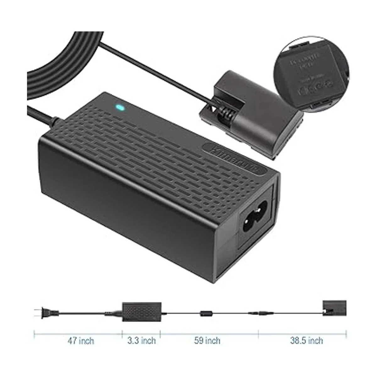 Función perfecta: el acoplador DRE6 CC puede reemplazar la batería Canon LPE6/LPE6N/LPE6NH, mantiene la cámara funcionando durante horas sin miedo a teñir la batería, anillo magnético antiinterferencia, indicador LED, cable súper largo cable CC 59 pulgadas, cable CA 47 pulgadas, cable acoplador CC 38.5 pulgadas.