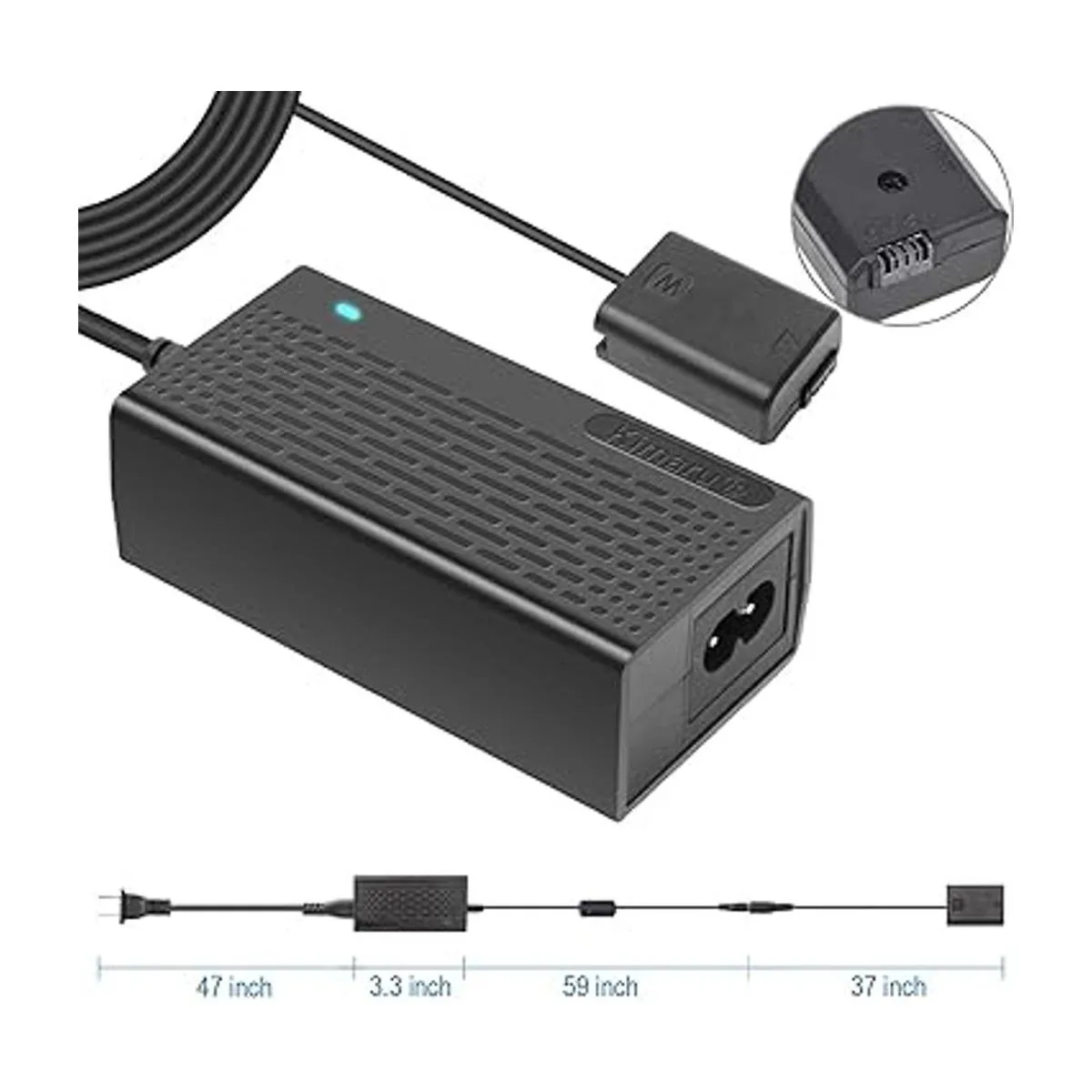 Kimaru Adaptador de fuente de alimentación ACPW20 NPFW50 Kit de batería simulada para Sony Alpha ZVE10 A6000 A6100 A6300 A6400 A6500 A5000 A5100 A7 A7II A7RII A7S A7SII RX10II III V NEX3Cámaras 567.
