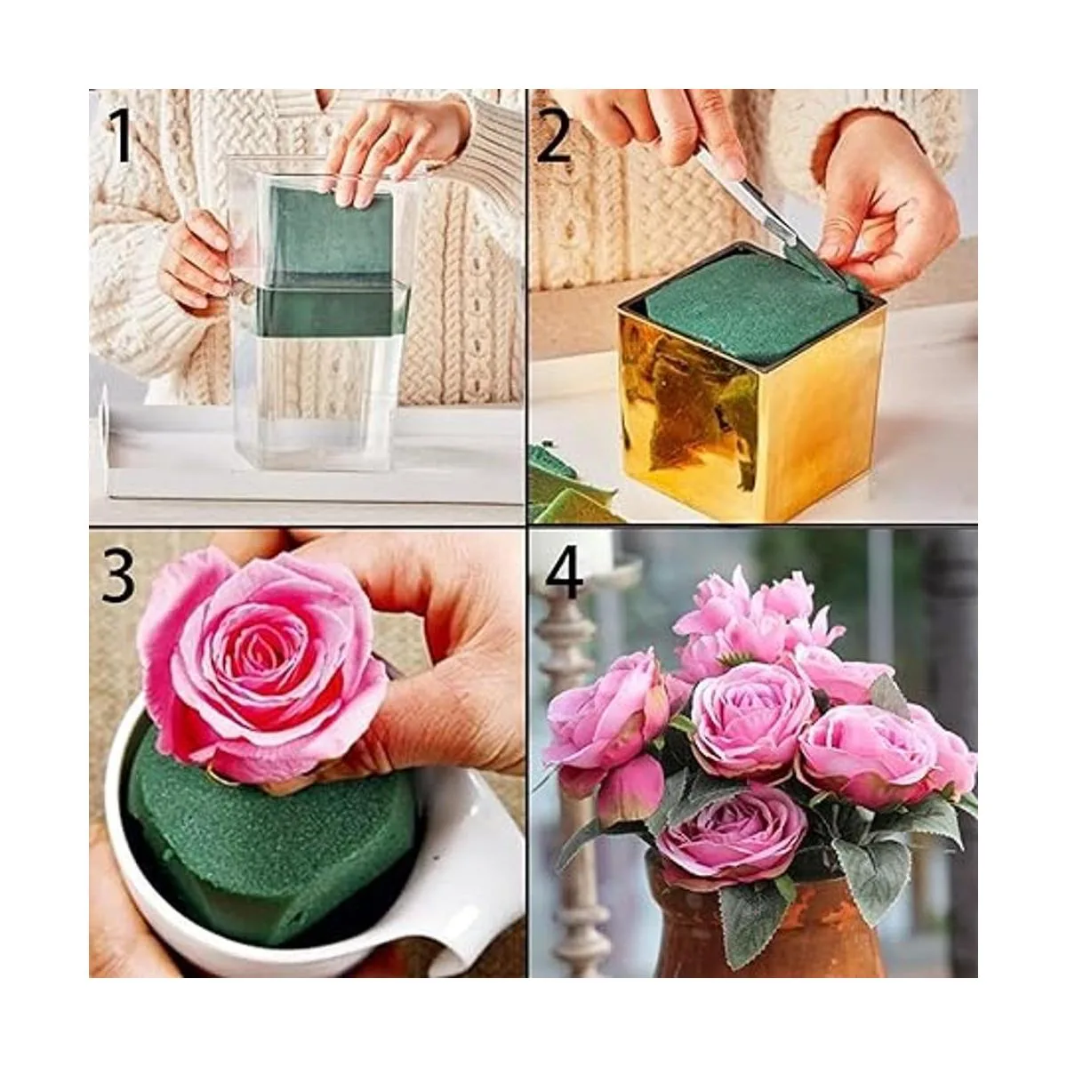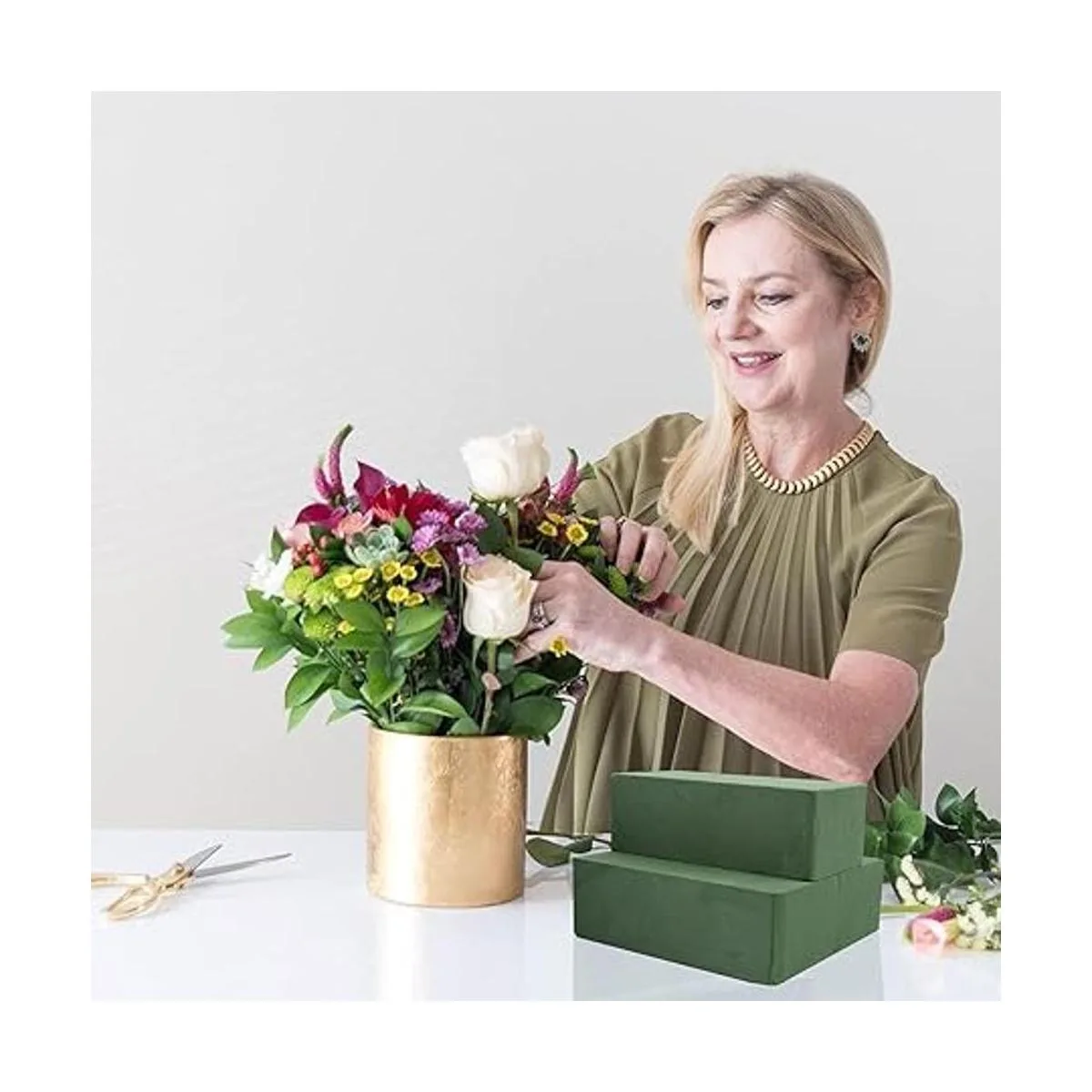 Fácil de usar: la espuma floral húmeda se puede cortar cualquier tamaño y forma como quieras, ponla en agua ligeramente y espera un minuto hasta que absorba el agua completamente.