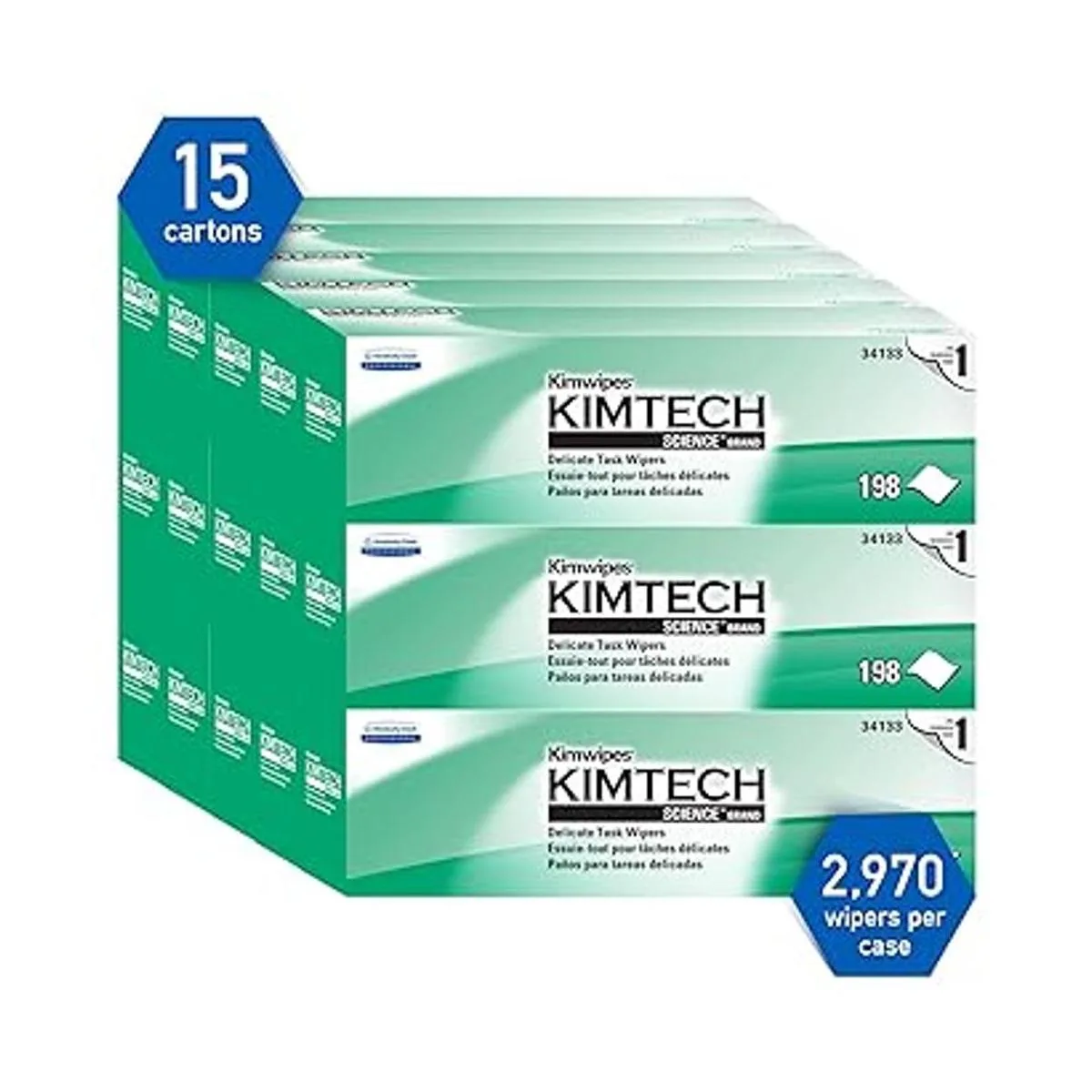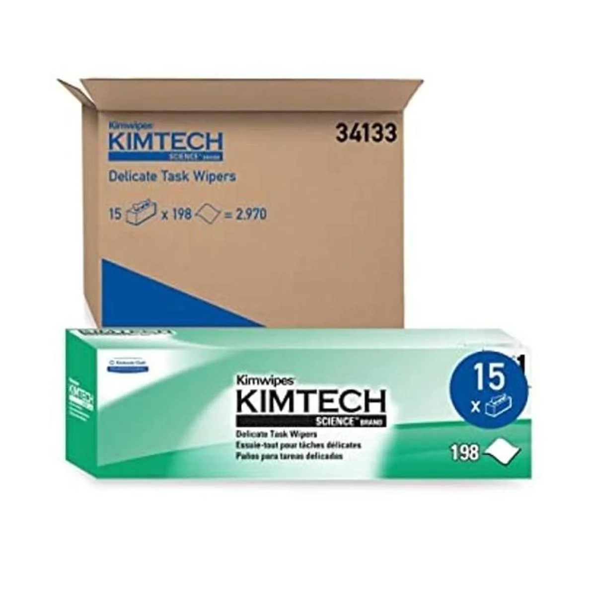 Kimwipes Delicate Task Limpiadores científicos Kimtech 34133, Blancas, 1 Hoja, 15 cajas con ranura Caja, 196 Hojas Caja, 2,940 Hojas Cartón