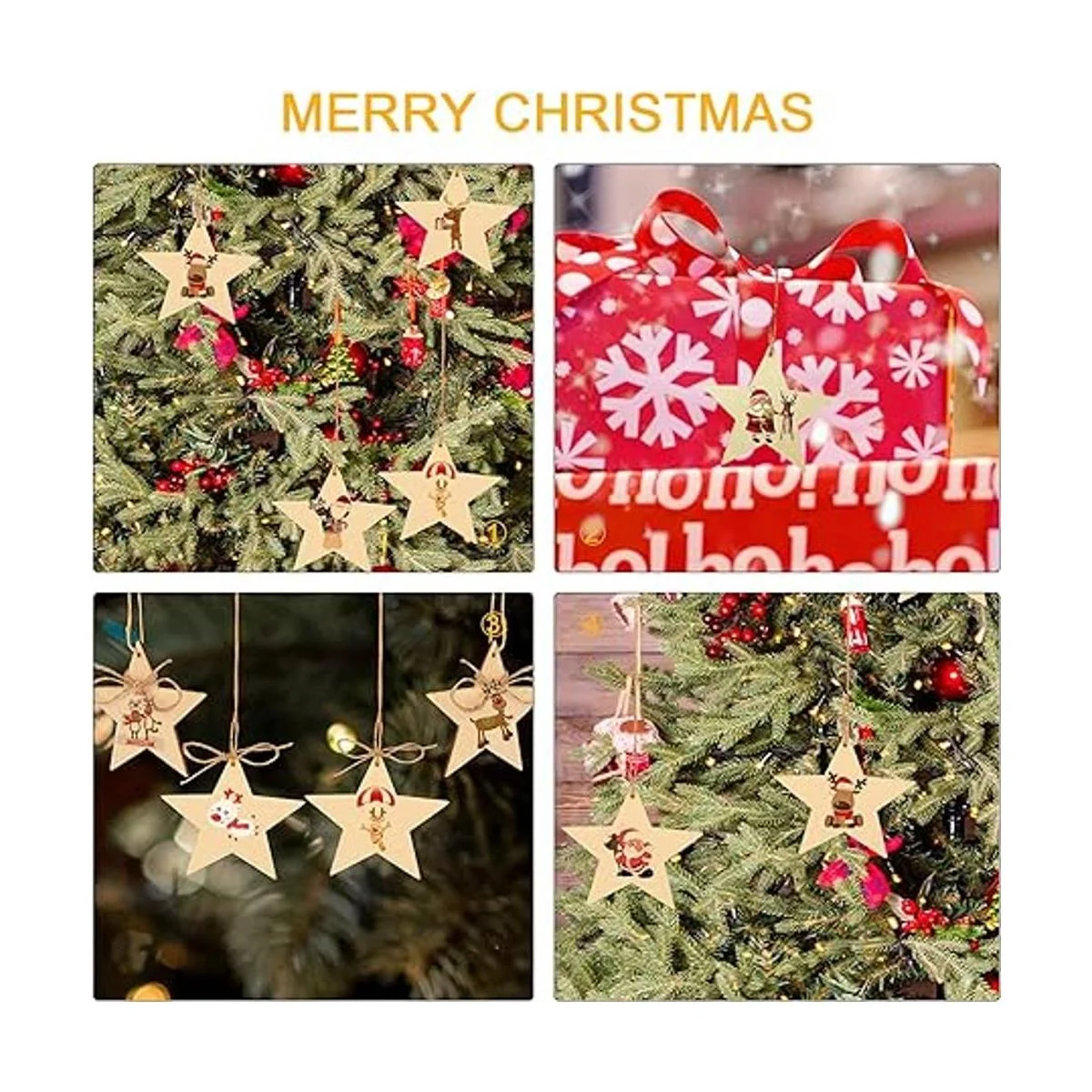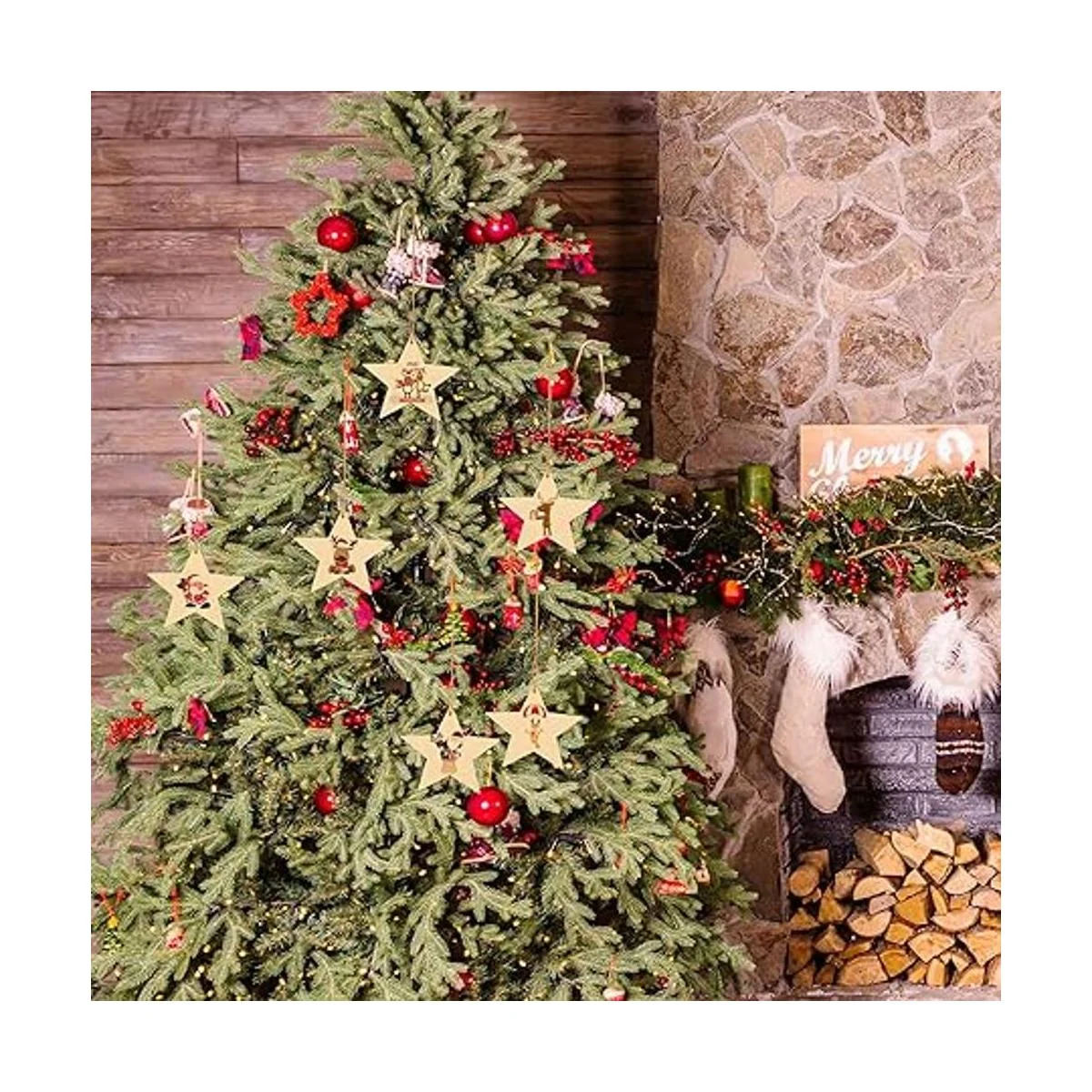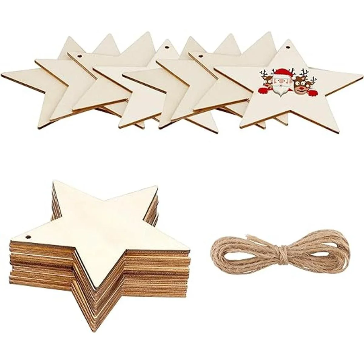 KINBOM 50 piezas de estrella de madera natural, madera con recorte de cordel natural, adornos de estrella de madera sin terminar para Navidad, hogar, fiesta, boda, cumpleaños, día festivo, decoración