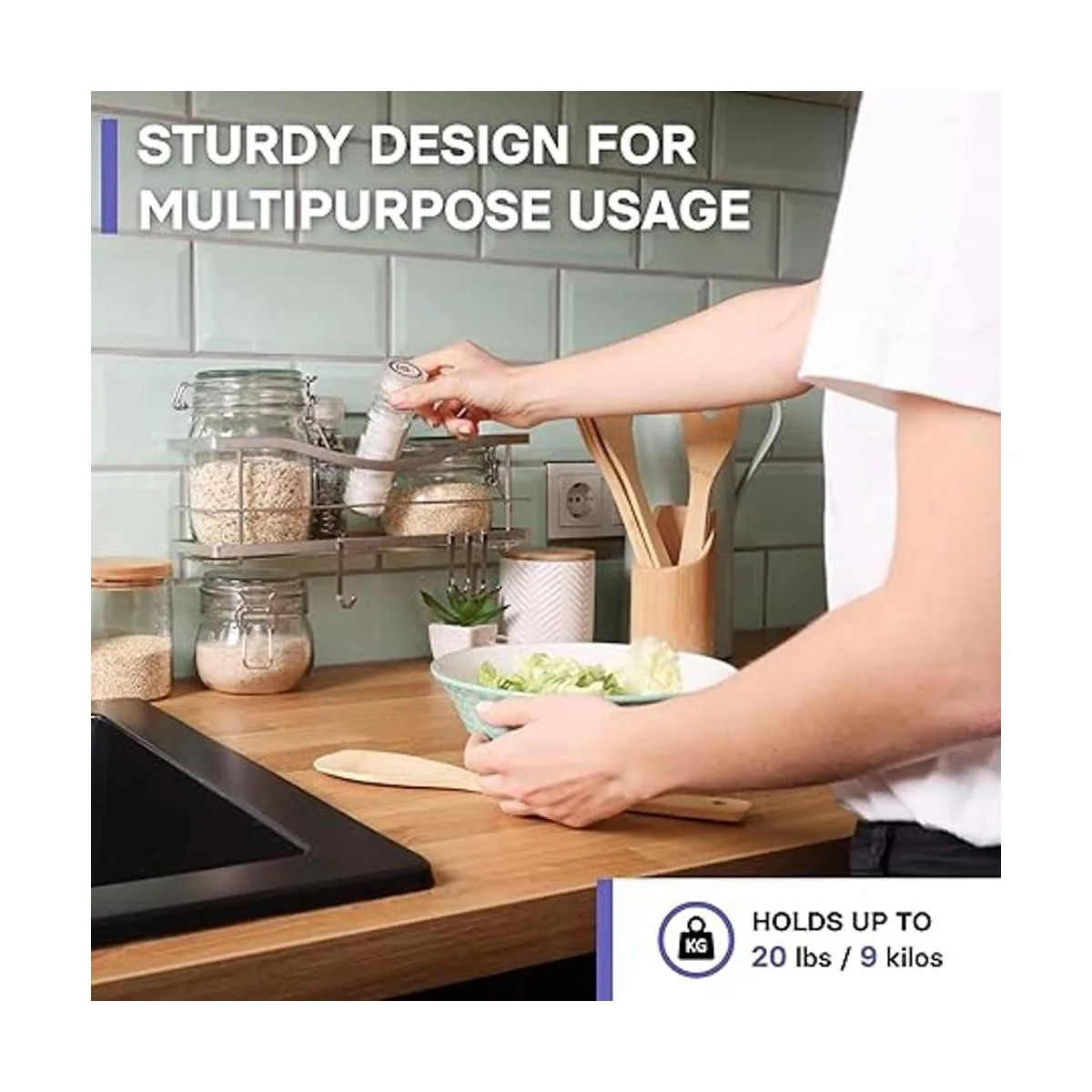 Multifuntional Organizer that Lasts Our caddy is suitable for multiple environments, such as bathroom, kitchen, or entry area. The adhesive can withhold up to 20lbs of weight, which is enough even for a big family to keep all your accessories stored