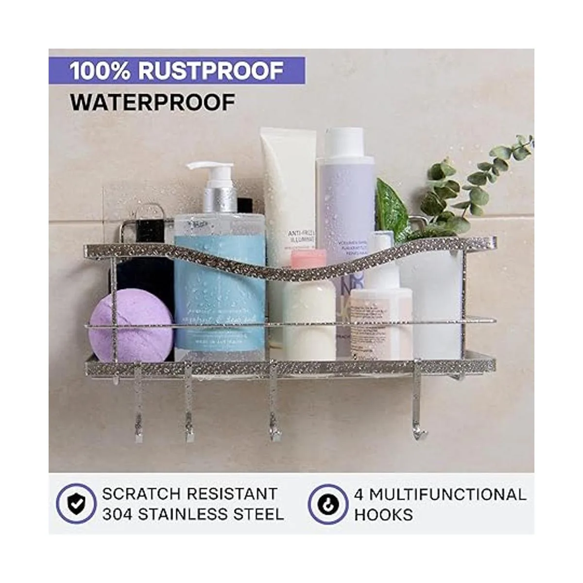 Hooks icluded The shower caddy comes with 4 hooks that can be freely attached and moved to your liking, so you never have to worry about additional space to hang your razor, sponge or towel