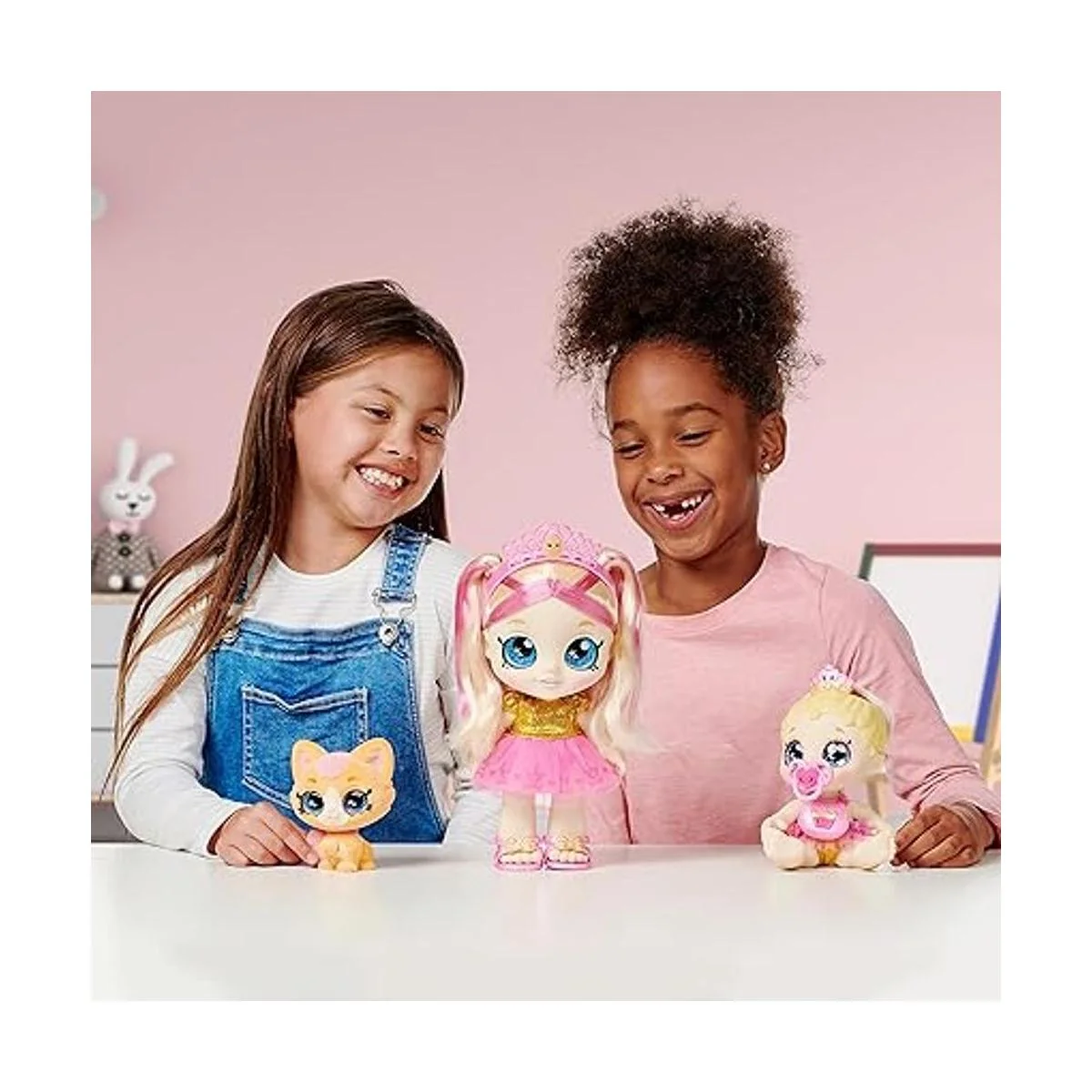 Kindi Kids Muñecas de juguete, perfumadas, muñeca niña y su hermana bebé y su mascota, Pawsome Royal Family, para preescolares, de 10 pulgadas Tiara Sparkles, 6.5 pulgadas, Baby Kindi Teenie Tiara y su mascota Kindi Prince Purrfection