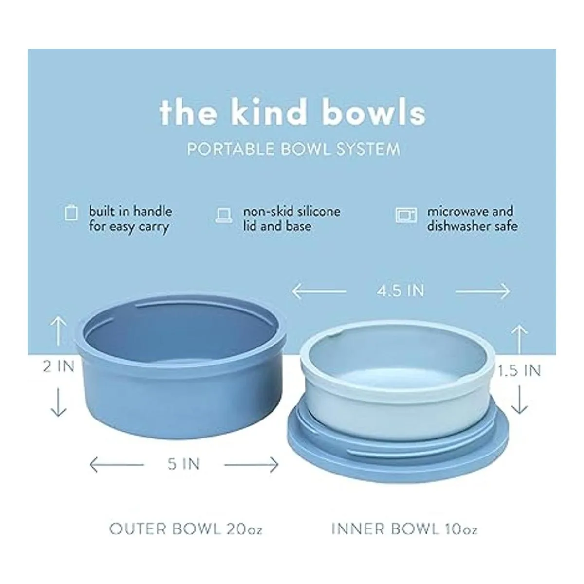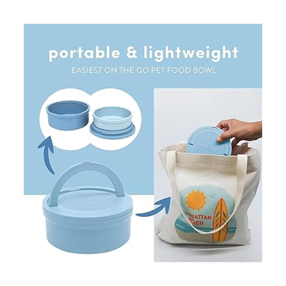 KindTail Cuencos Kind, cuencos de viaje para perros, cuencos portátiles para mascotas, microondas y lavavajillas con tapa y asa, cuenco interior con capacidad de 10 onzas y cuenco exterior con capacidad de 20 onzas, color azul claro