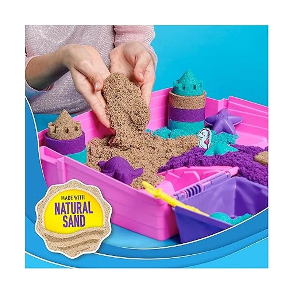 KINETIC SAND Juego de palacio de sirena: construye el mágico reino de sirena de tus sueños con este juego Con exclusiva arena brillante, herramientas y caja de arena reutilizable para una fácil limpieza