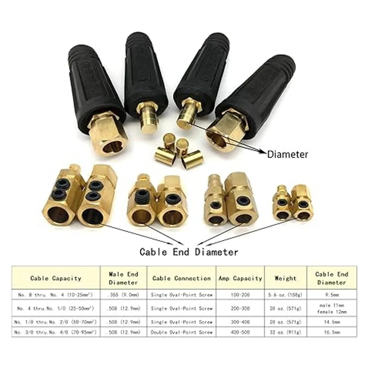 Obtienes dos 2 pares de conectores de cable rápidos de 200 amperios a 300 amperios con accesorios a este precio.