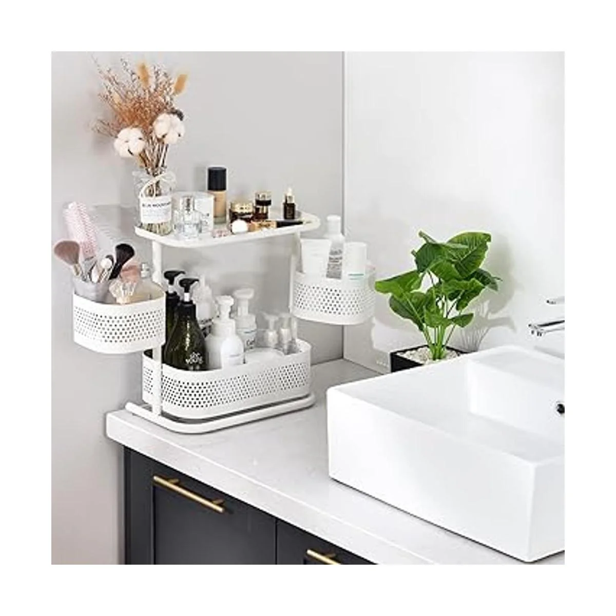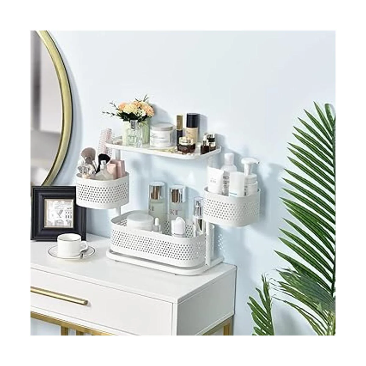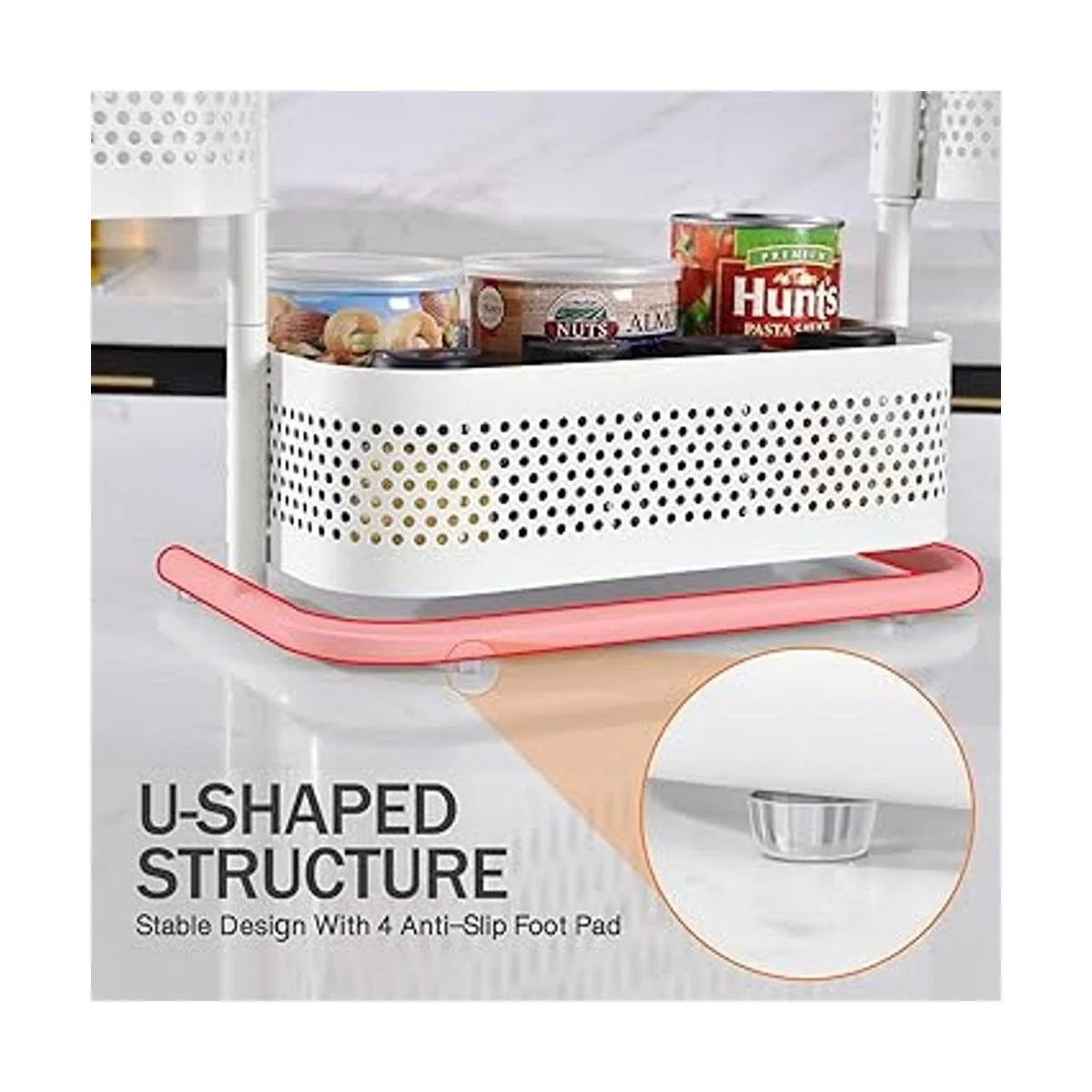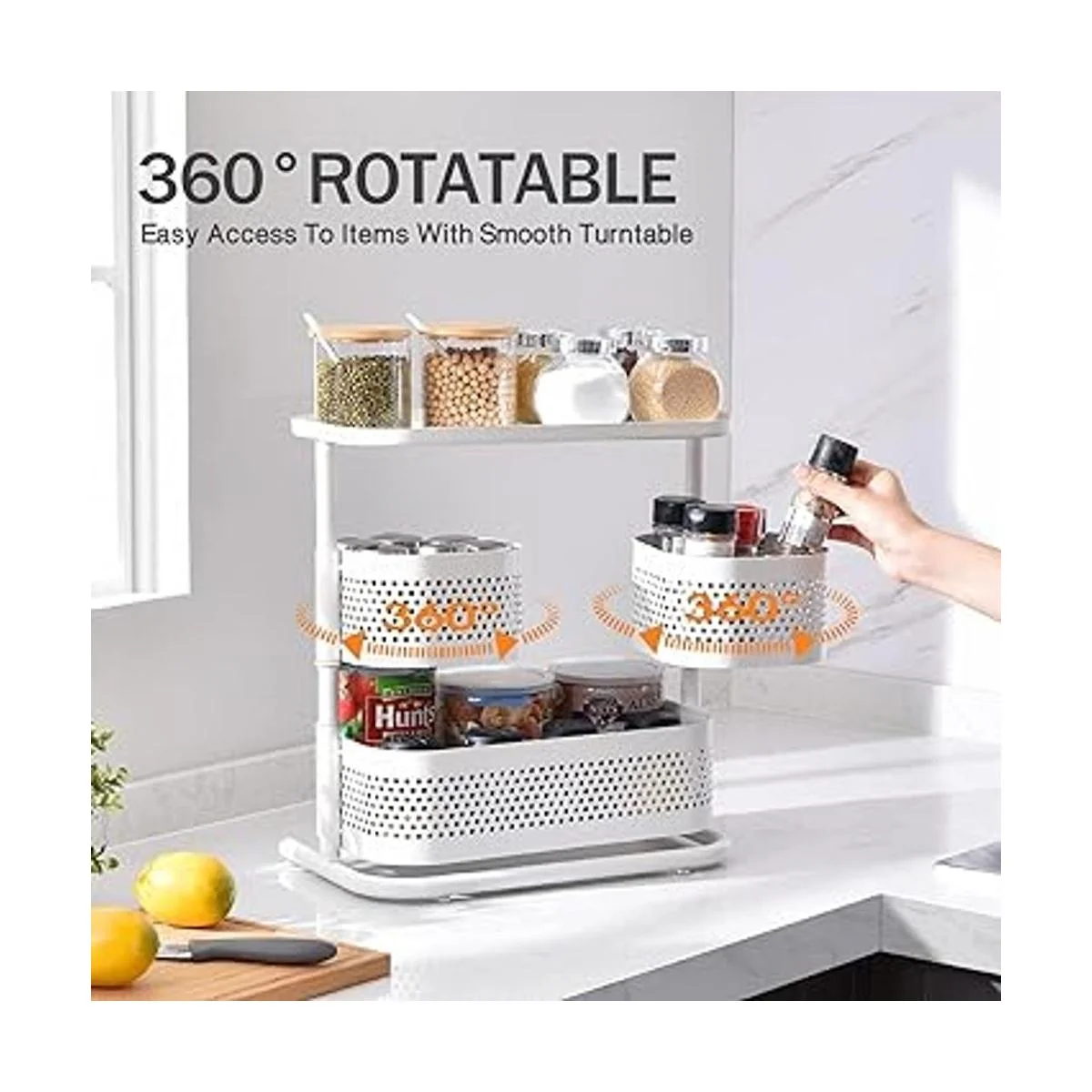 Rotación suave de 360 grados: las dos cestas del estante organizador de encimera pueden girar suavemente y el diseño giratorio te permite obtener fácilmente los artículos desde todos los lados.