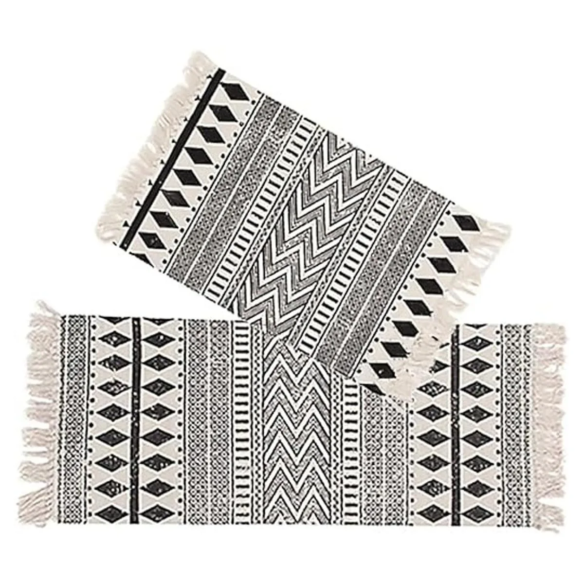 Kingrol Paquete de 2 alfombras vintage con borlas impresas de algodón para cocina, sala de estar, dormitorio, baño, cuarto de servicio, 2 x 3 pies, 2 x 4.2 pies
