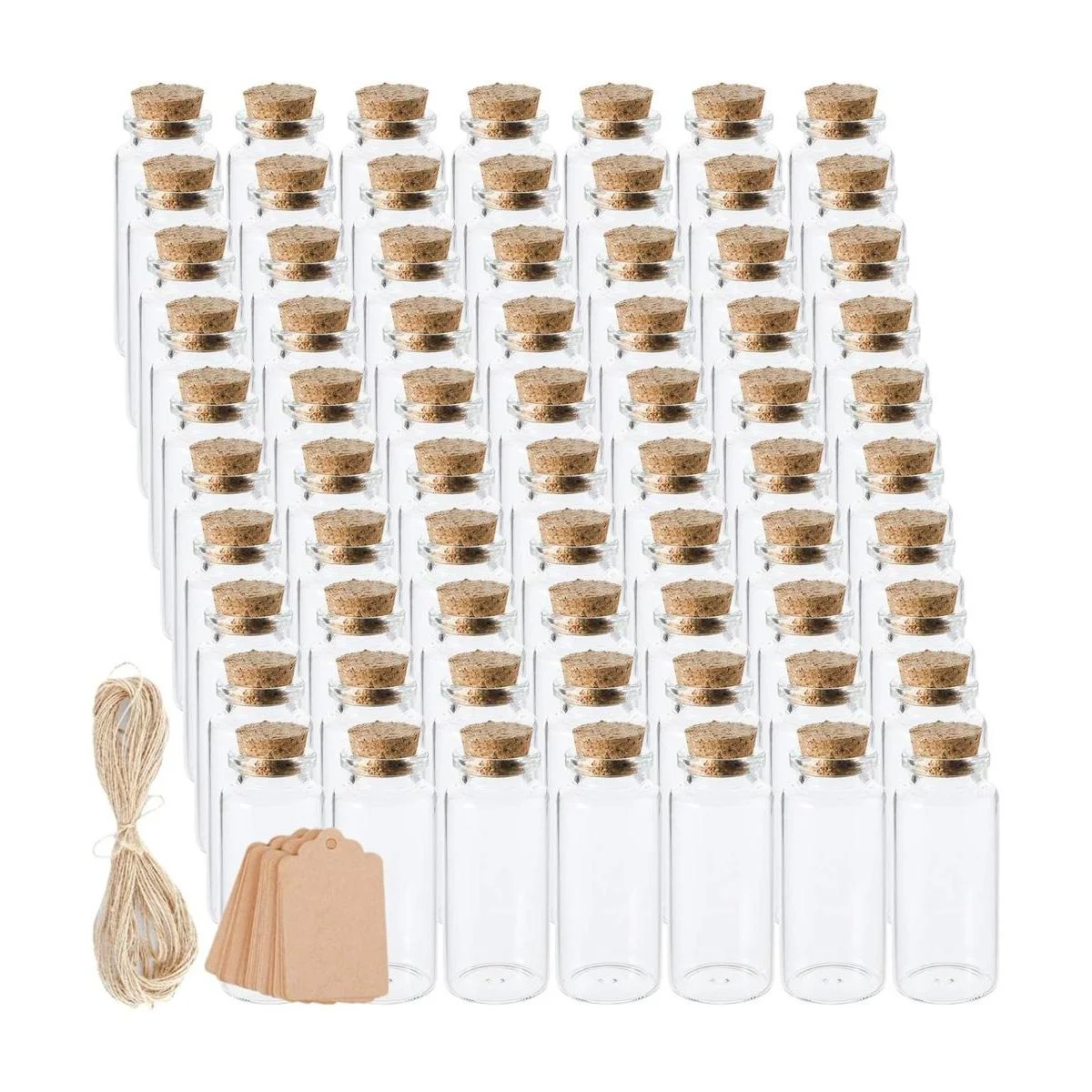 El juego incluye 70 botellas de vidrio con corchos, 100 etiquetas de papel kraft y cordel de 65.6 ft, se puede utilizar para una variedad de estilos o diseños.