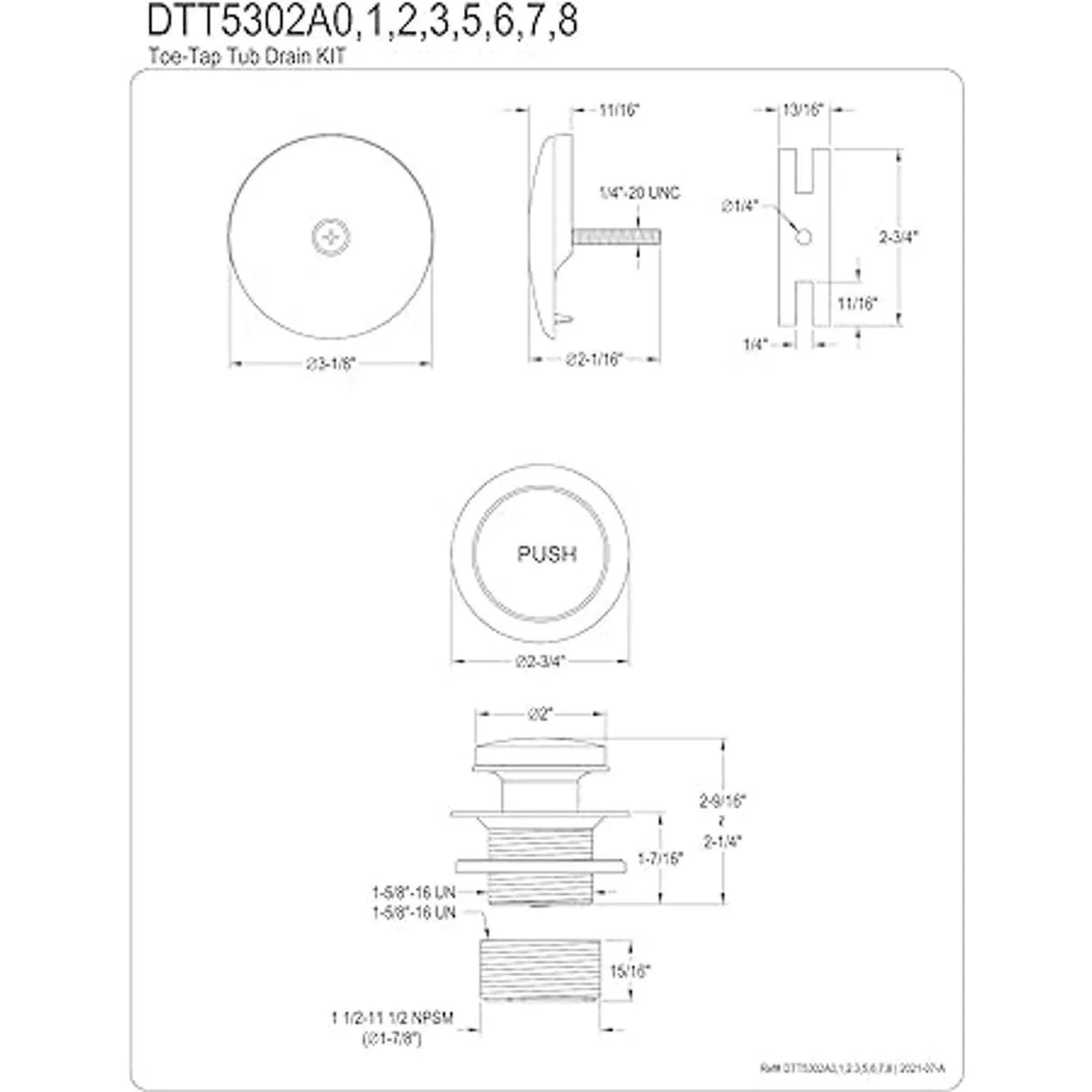 Kingston Brass DTT5302A1 Match TouchToe, kit de drenaje de tina, cromo pulido