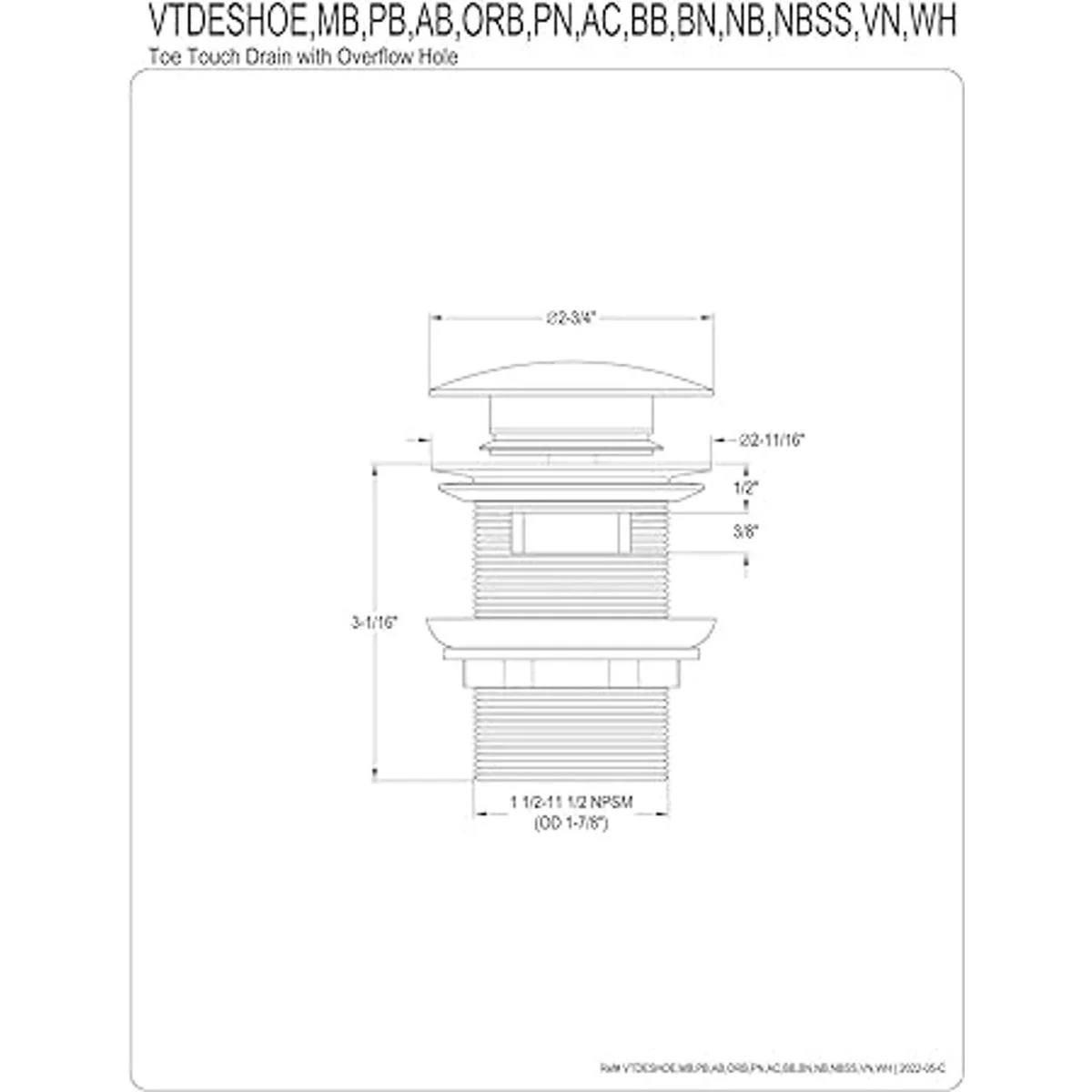 Kingston Brass VTDESHOEBN Trimscape ToeTouch Drenaje para bañera con desbordamiento, níquel cepillado