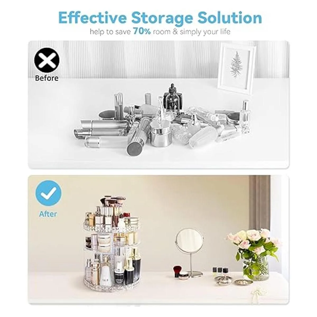 Organizador de maquillaje giratorio de 360 Estos organizadores de cuidado de la piel cuentan con una rotación suave de 360. Todos tus artículos de maquillaje y cuidado de la piel se almacenan en un espacio limpio y ordenado. Solo con un simple giro, encontrarás lo que quieres en cuestión de segundos.
