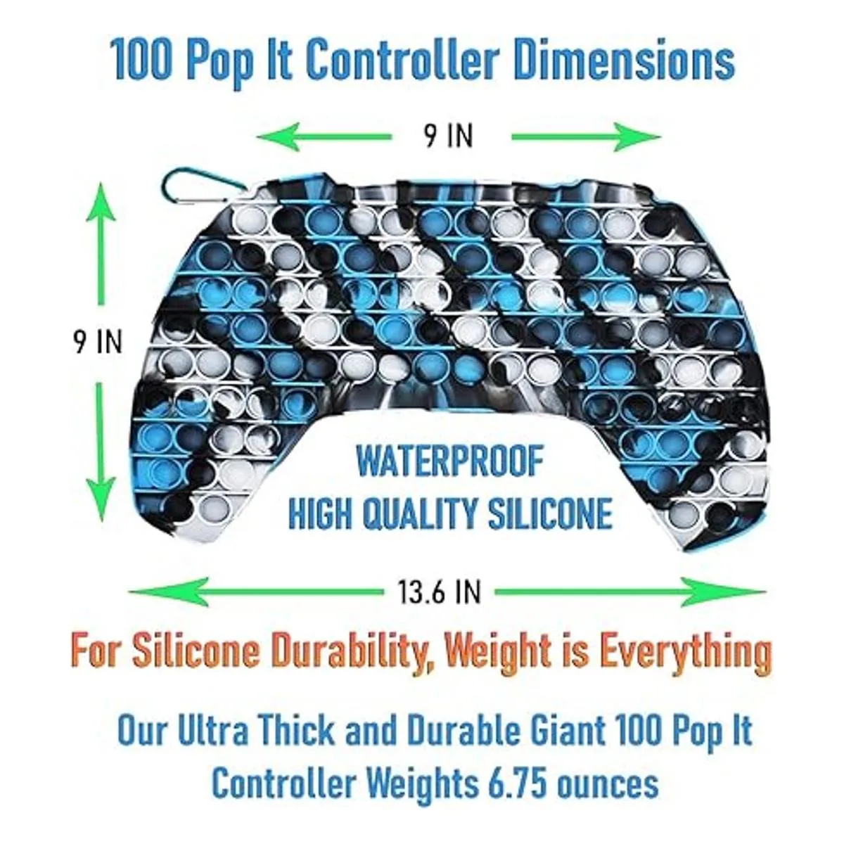 Alta calidad: con un peso resistente de 6.75 onzas, nuestro juguete grande con forma de controlador Push Pop con llavero está hecho de silicona de alta calidad, que es seguro, no tóxico, insípido y durará mucho tiempo. Duradero y fácil de limpiar. Si se ensucia, simplemente lava con agua.