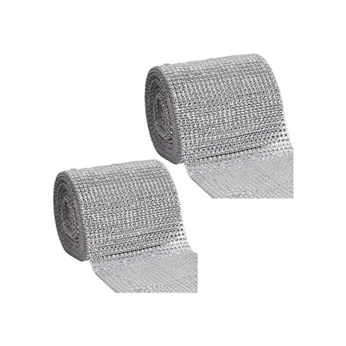 KINJOEK 2 rollos de 24 filas de diamantes de imitación de malla de 4.75 pulgadas en total de 20 yardas60 pies de diamante plateado para bricolaje, decoración de boda, pasteles, suministros de fiesta de cumpleaños, artes y manualidades.