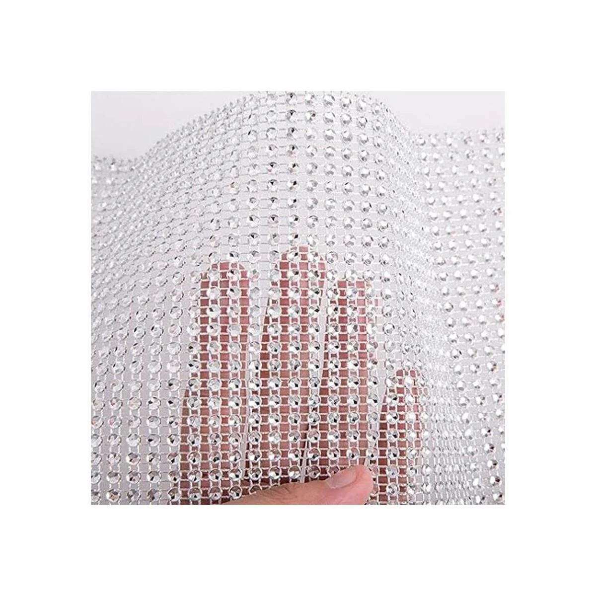 Bien hecho: cada diámetro de diamante es de 0.2 in, material de resina de plástico ABS con tratamiento de chapado, mantiene el brillo durante más tiempo. Se mantiene unido por malla de cuerda, sin bordes.