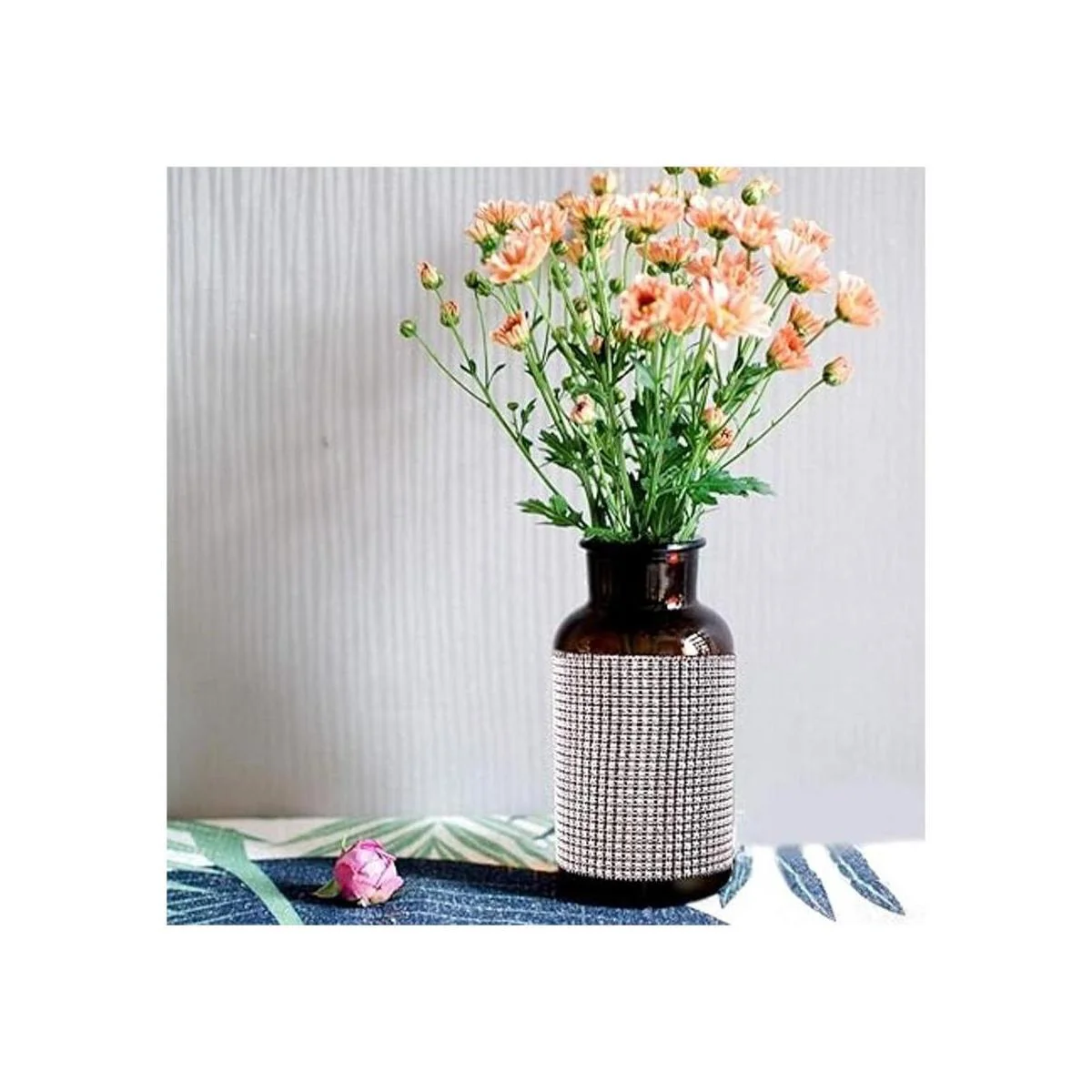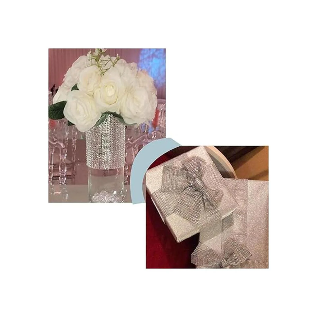 Hermosas decoraciones: envuelve esta hermosa cinta de diamantes de imitación alrededor de velas, portavelas, tartas de boda, jarrones, mesa, lámpara, etc. Son brillantes y crean un aspecto realmente elegante.