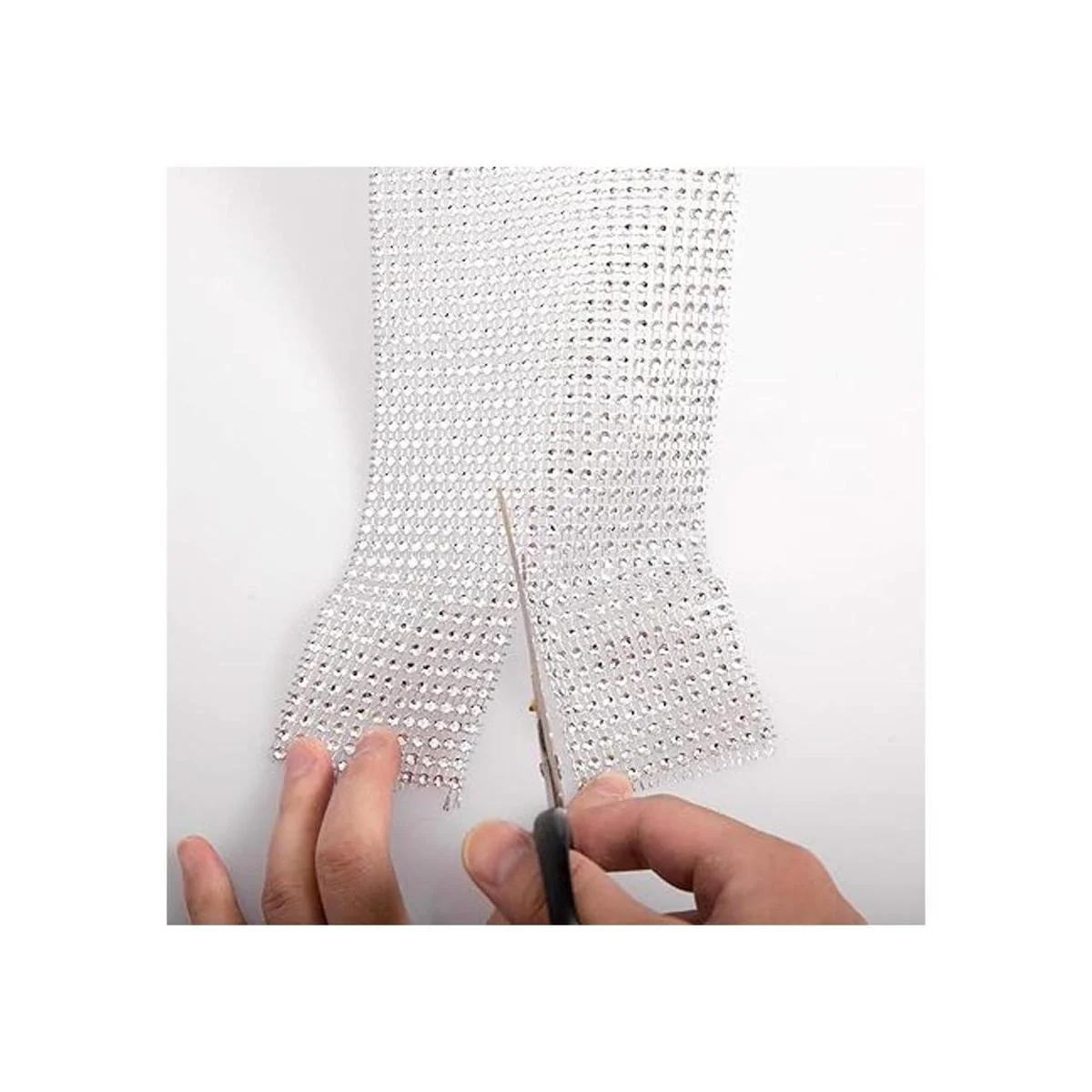 Fácil de usar: estos 2 rollos de malla de diamante son flexibles y recortables. Tiene 24 filas de diamantes de imitación a lo largo y es de 4.7 in de ancho y 29.5 ft de largo, total de 59.1 ft. Se puede cortar fácilmente con tijeras a cualquier forma que desees.