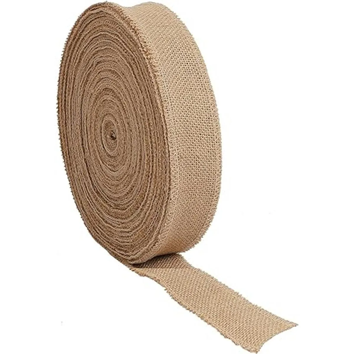 KINJOEK Cinta de arpillera de 177.2 ft de ancho, cinta de yute natural, cinta de manualidades para regalos de boda de Navidad, tela de arpillera, cinta de bricolaje para decoración
