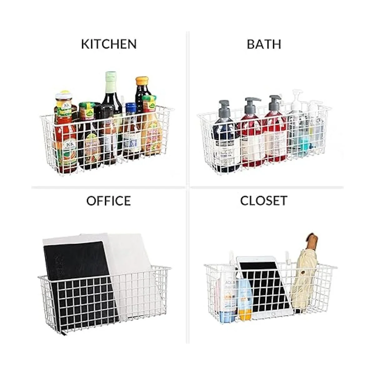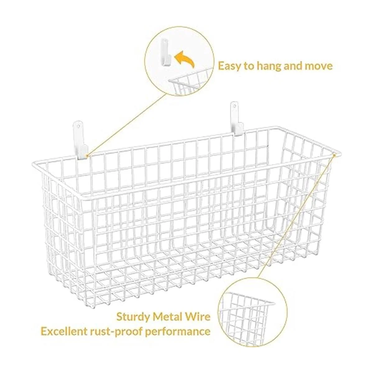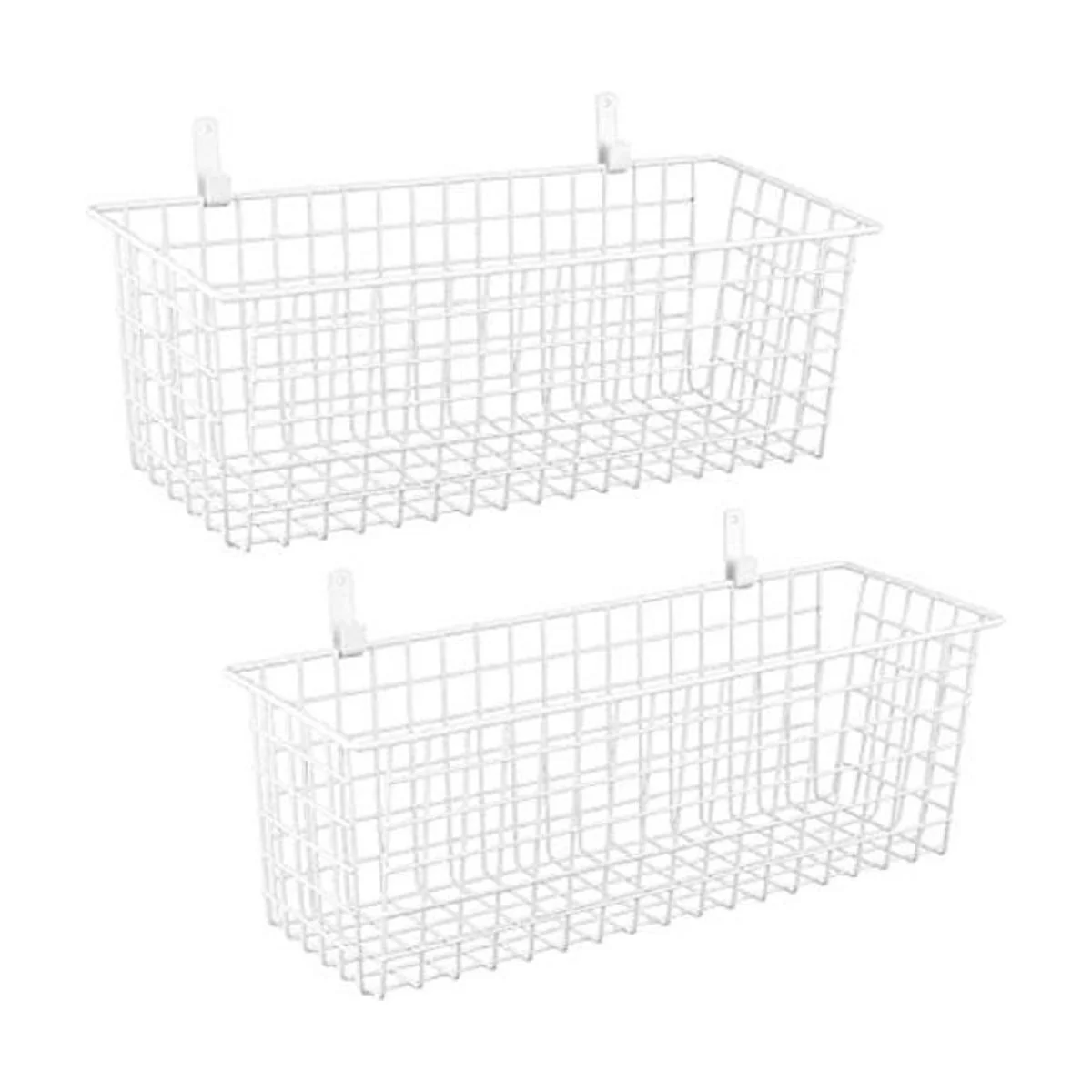 KINLINK Cestas de alambre, cestas de almacenamiento de alambre, cestas de alambre duraderas para almacenamiento en la pared, cestas de alambre colgantes extra grandes, cestas de montaje en pared para cocina, baño, armarios, encimera, paquete de 2, color blanco