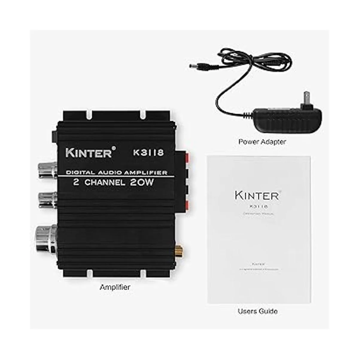 Kinter K3118 Texas Instruments TI Digital HiFi Audio Mini Class D Home Auto DIY Arcade Amplificador estéreo con fuente de alimentación de 12 V 3 A, color negro