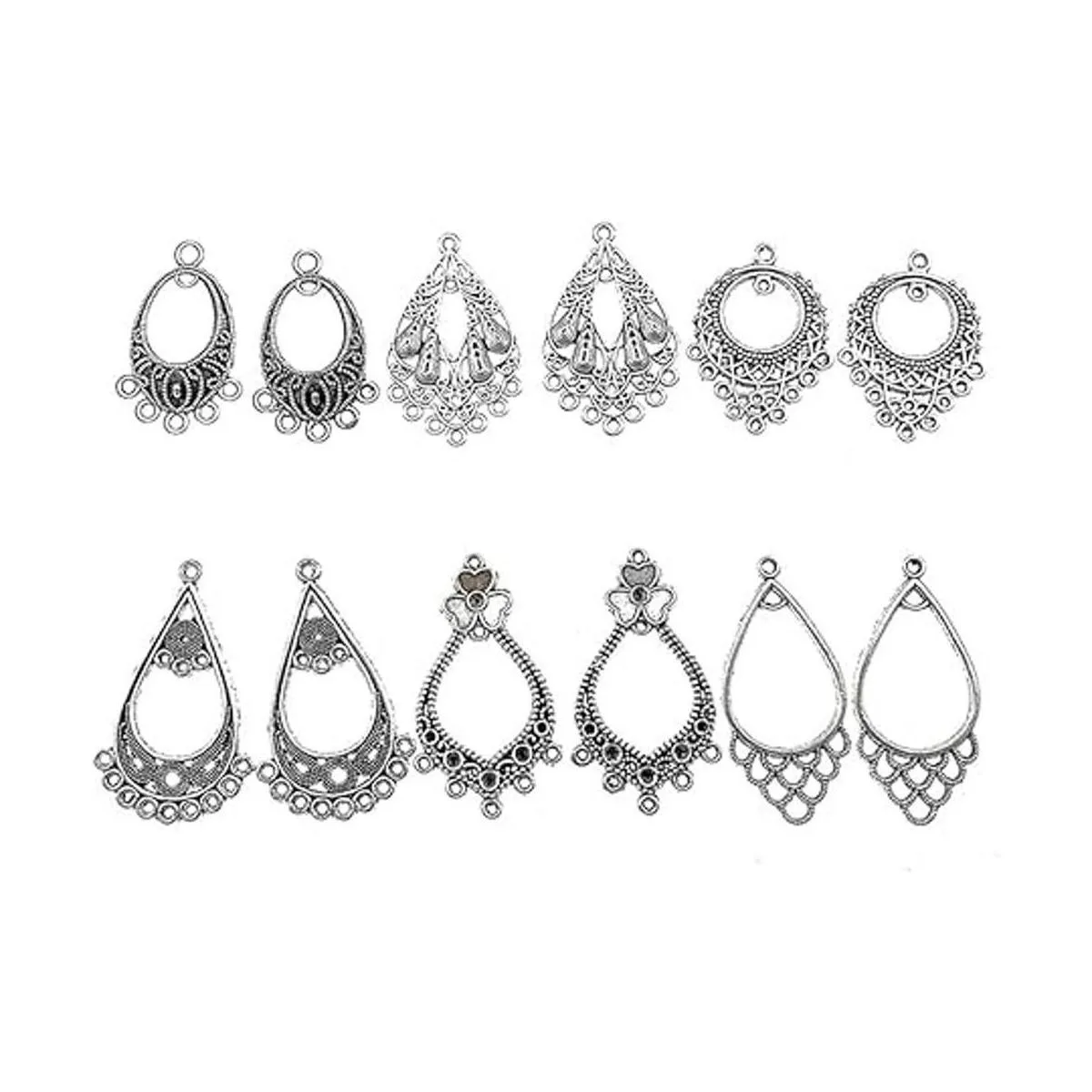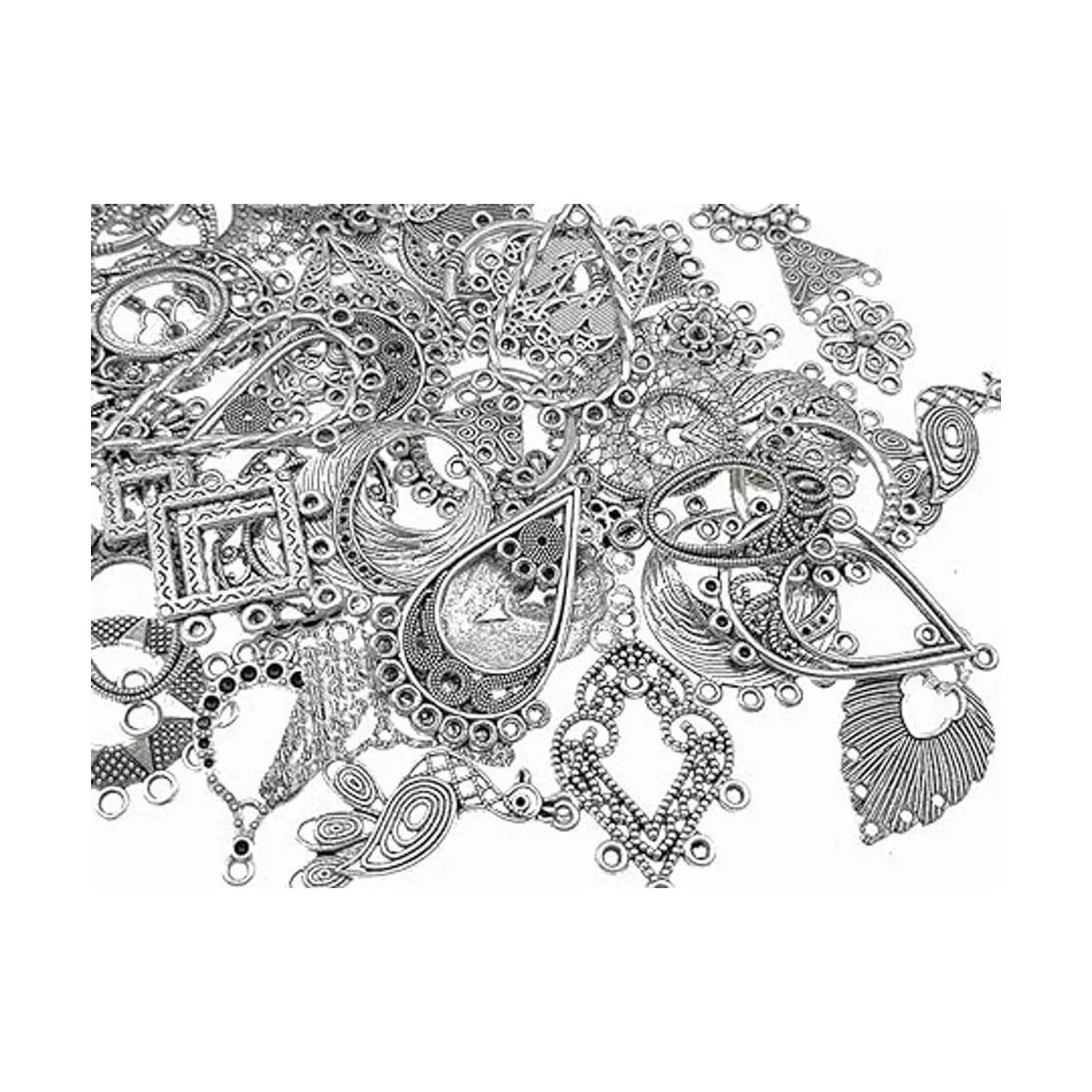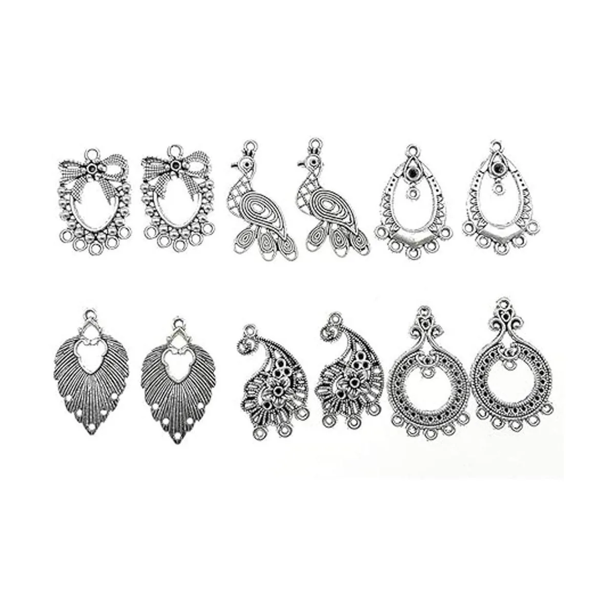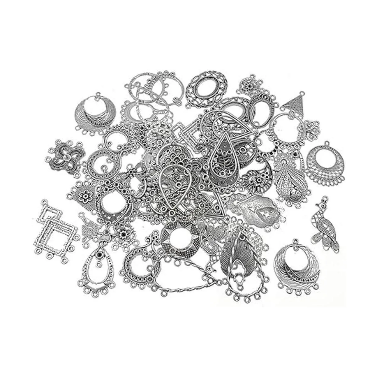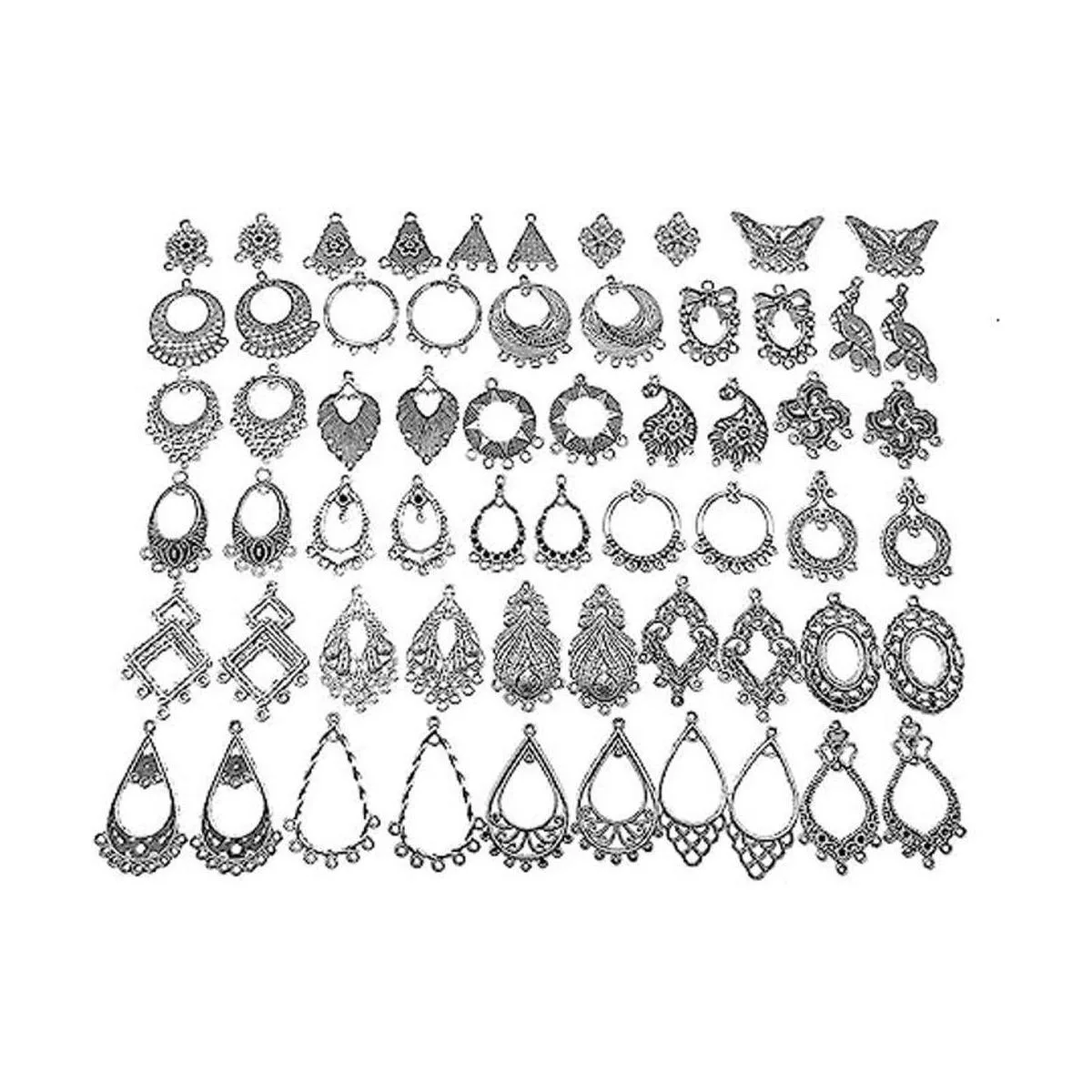 Paquete: 30 pares de conectores de pendientes con diferentes estilos. Color: tono plateado tibetano.
