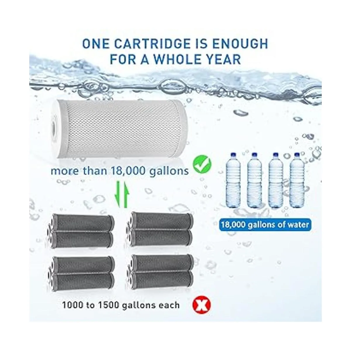 Capacidad de 18000 galones: un cartucho de repuesto ASIN: B094HXMLM5 tiene 7 veces de vida útil que el filtro de agua pequeño RV ordinario, disfruta de un excelente rendimiento y un flujo de agua completo, también reducirá tu gasto en un 60