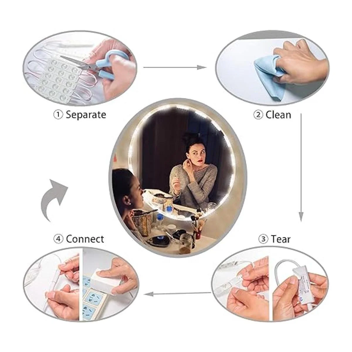 Luces de tocador estilo Hollywood: si siempre has querido un tocador estilo Hollywood, pero es demasiado caro, puedes elegir nuestras luces LED de espejo de tocador para hacer tu propio espejo estilo Hollywood.