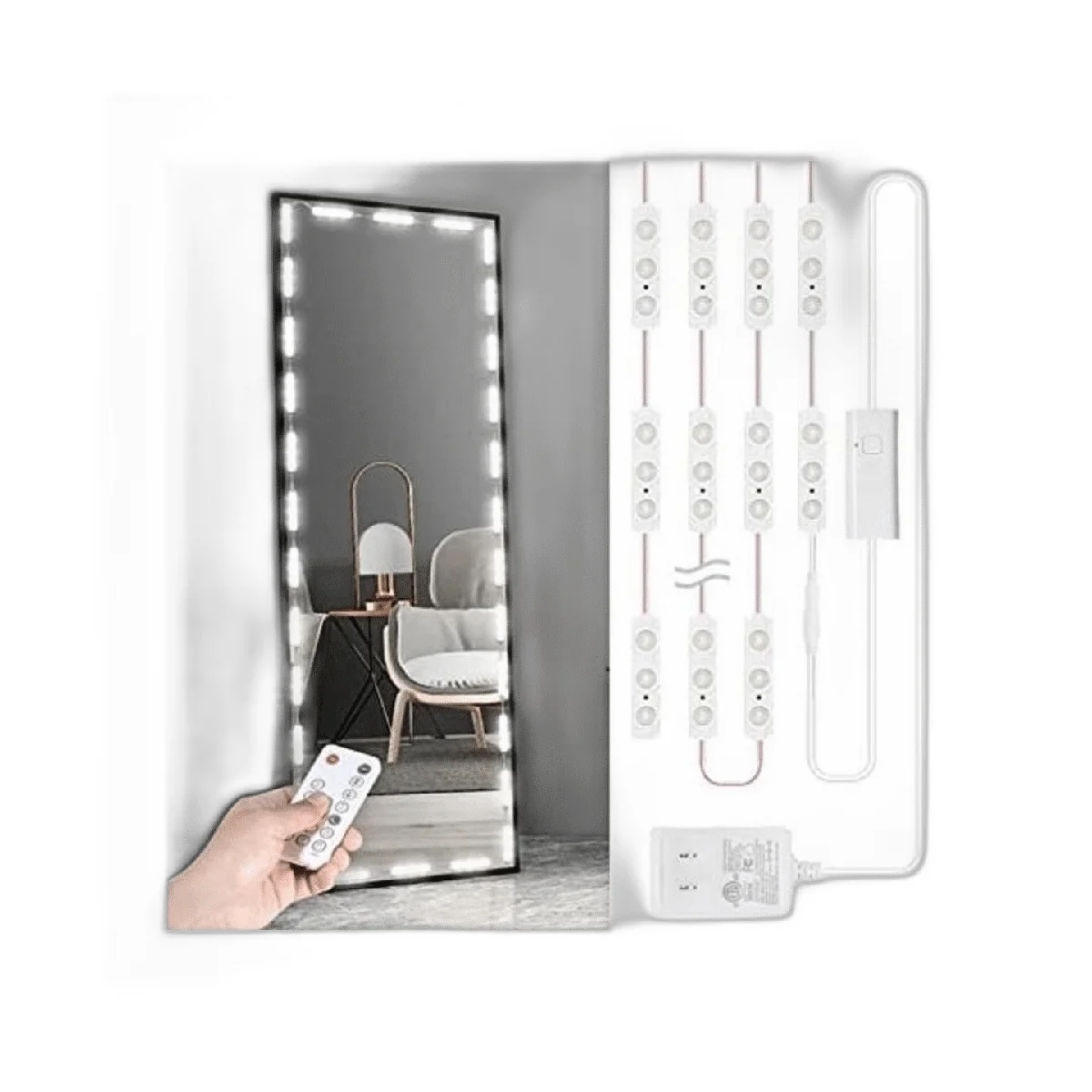 Kintion Luz LED de espejo de tocador, estilo Hollywood, 90 piezas LED blanco ultra brillante, tira de luz regulable de 13 pies 13.1 ft, impermeable, función de memoria, apagado de tiempo, modo de respiración espejo no incluido