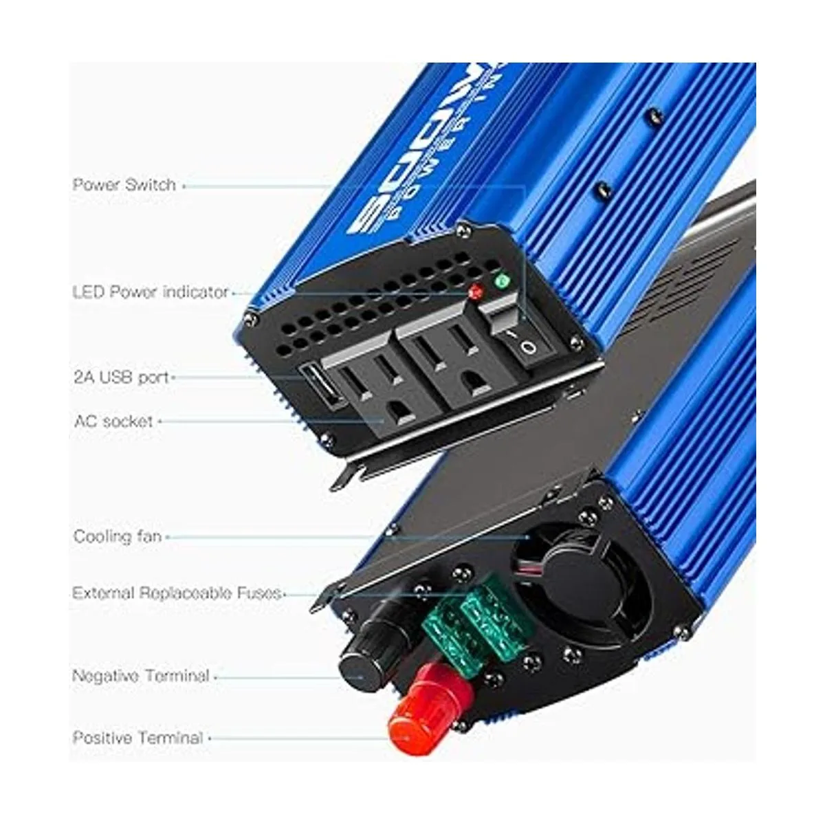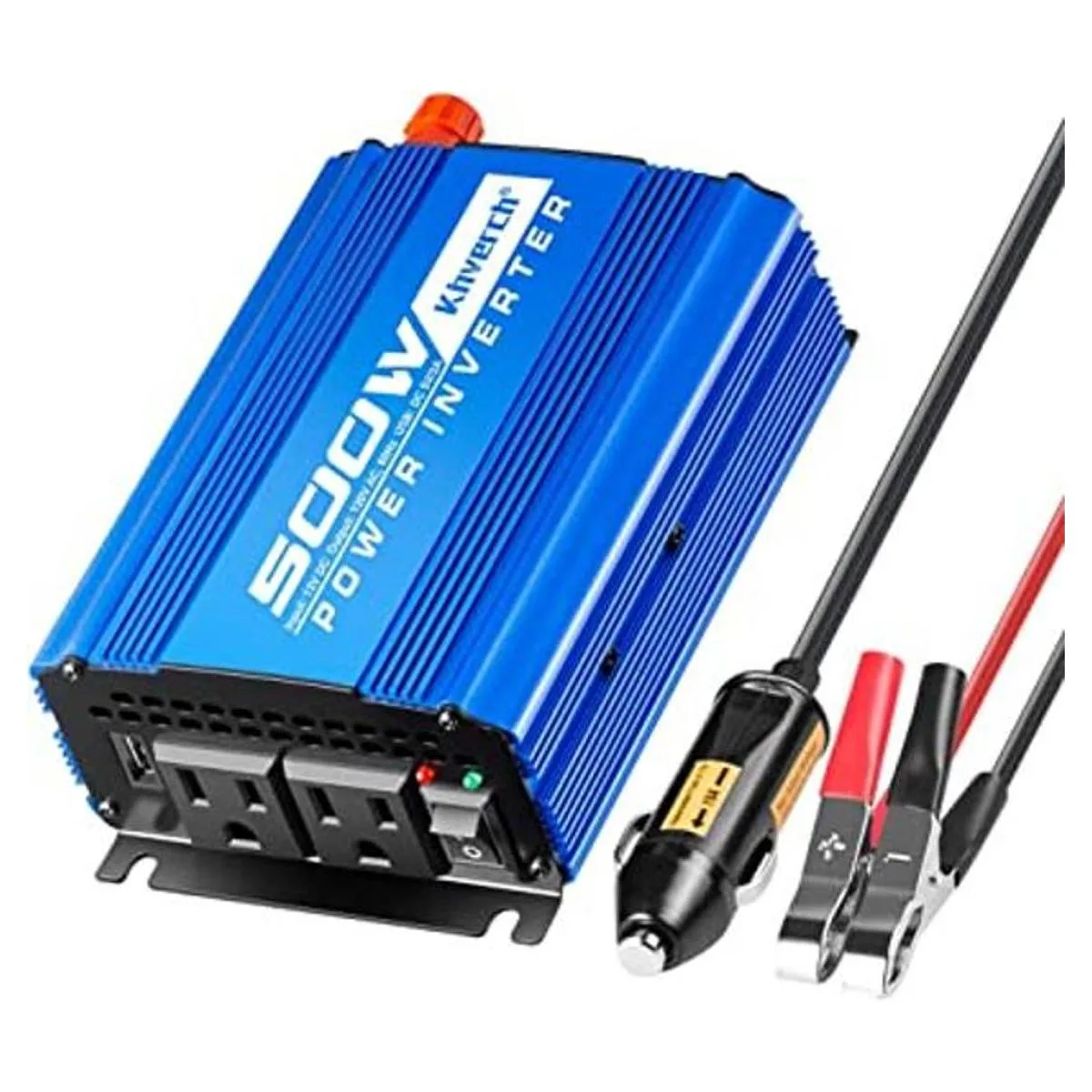 Kinverch Inversor de corriente continua de 500 W y 1000 W para automóvil de corriente continua de 12 V a CA 110 V con 2 salidas de CA y puerto de carga USB de 2 A