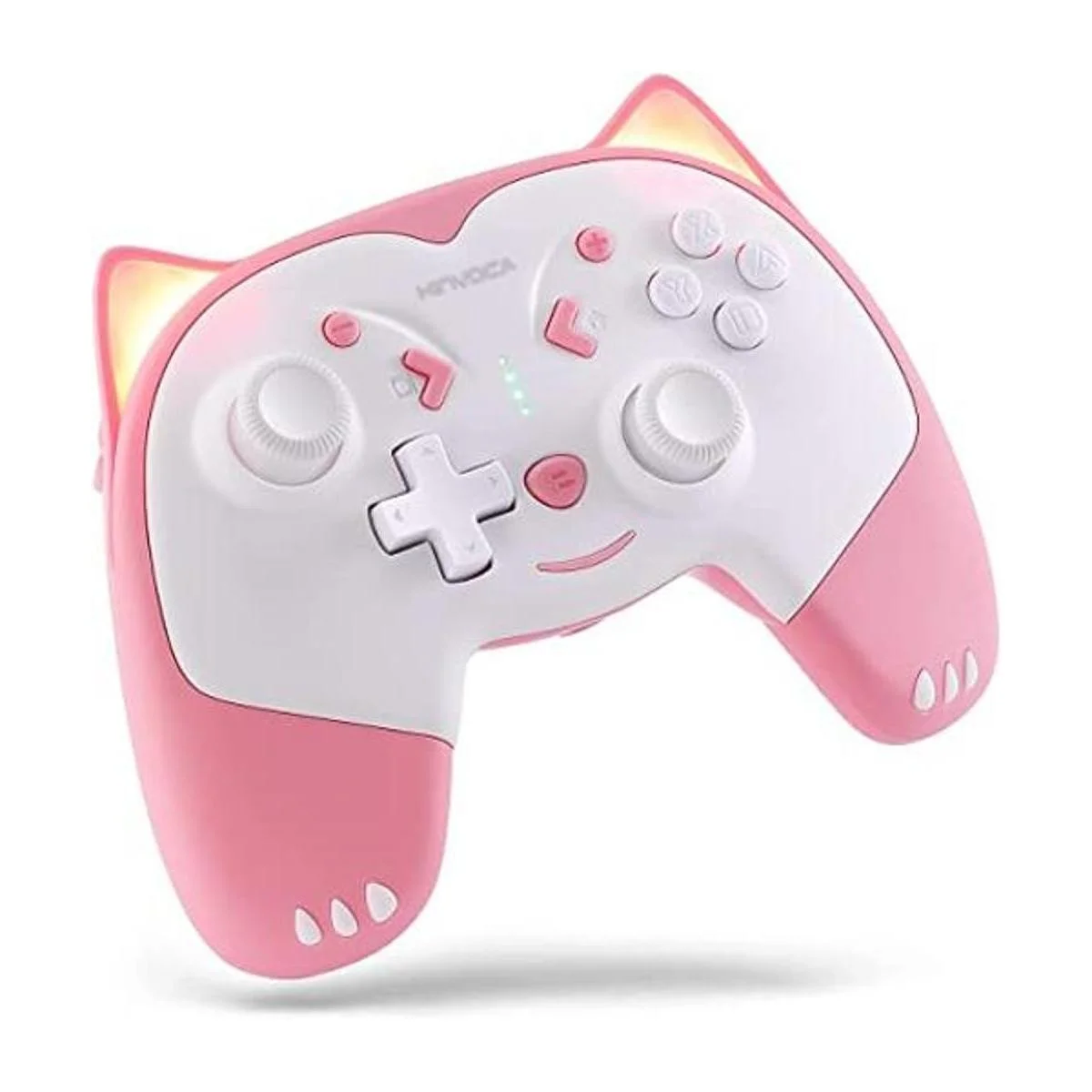 KINVOCA Controlador inalámbrico para Nintendo SwitchSwitch Lite, bonito controlador Pro con turbo, movimiento, vibración, despertador, conector de auriculares y luz de respiración, color rosa