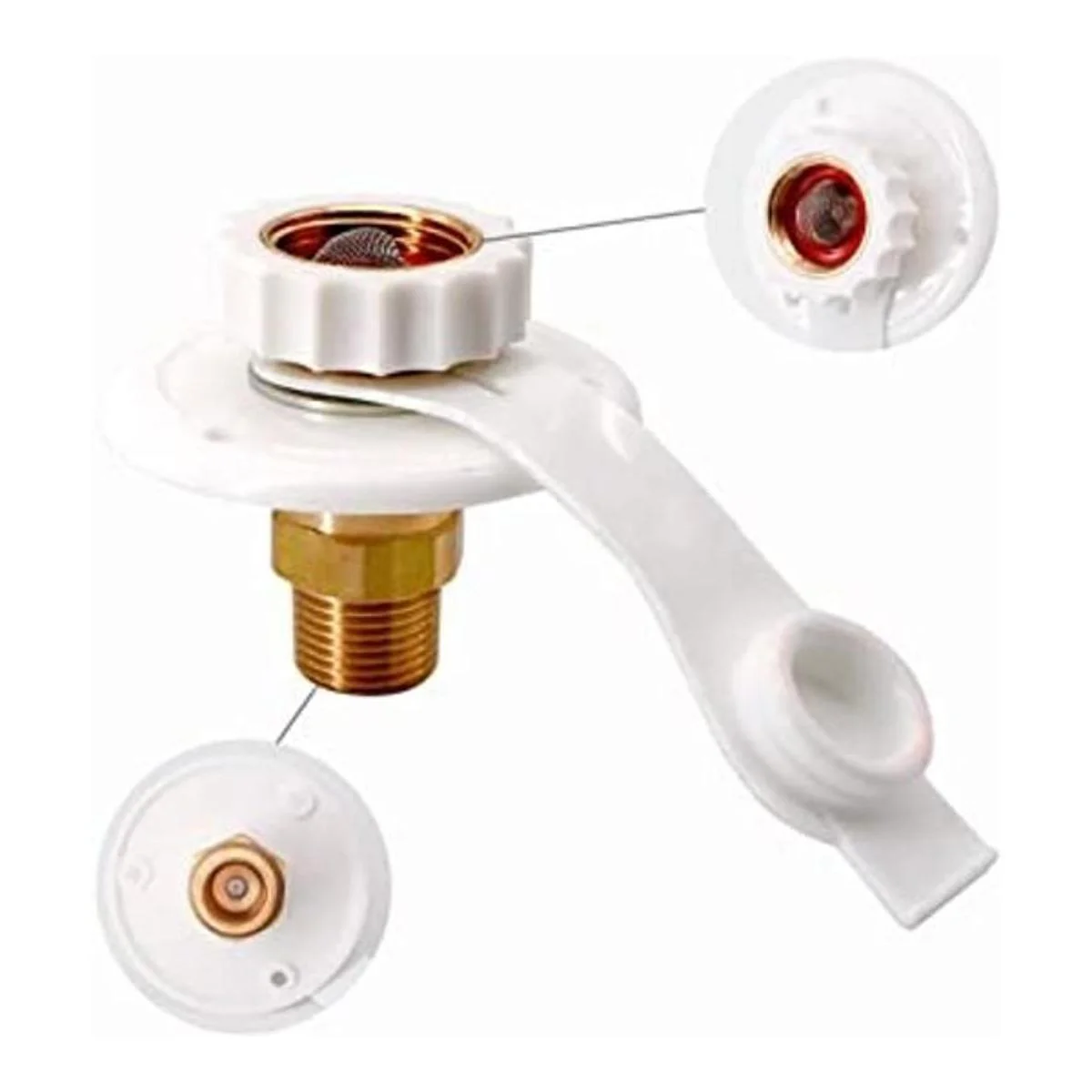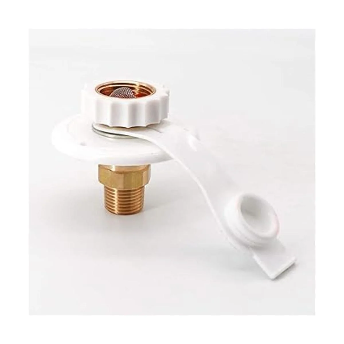 Kipa RV City Brida de entrada de agua de latón para RV 12 pulgadas, rosca hembra de 3 pulgadas, brida blanca, con válvula de retención para evitar retroceso en la conexión de agua de la ciudad