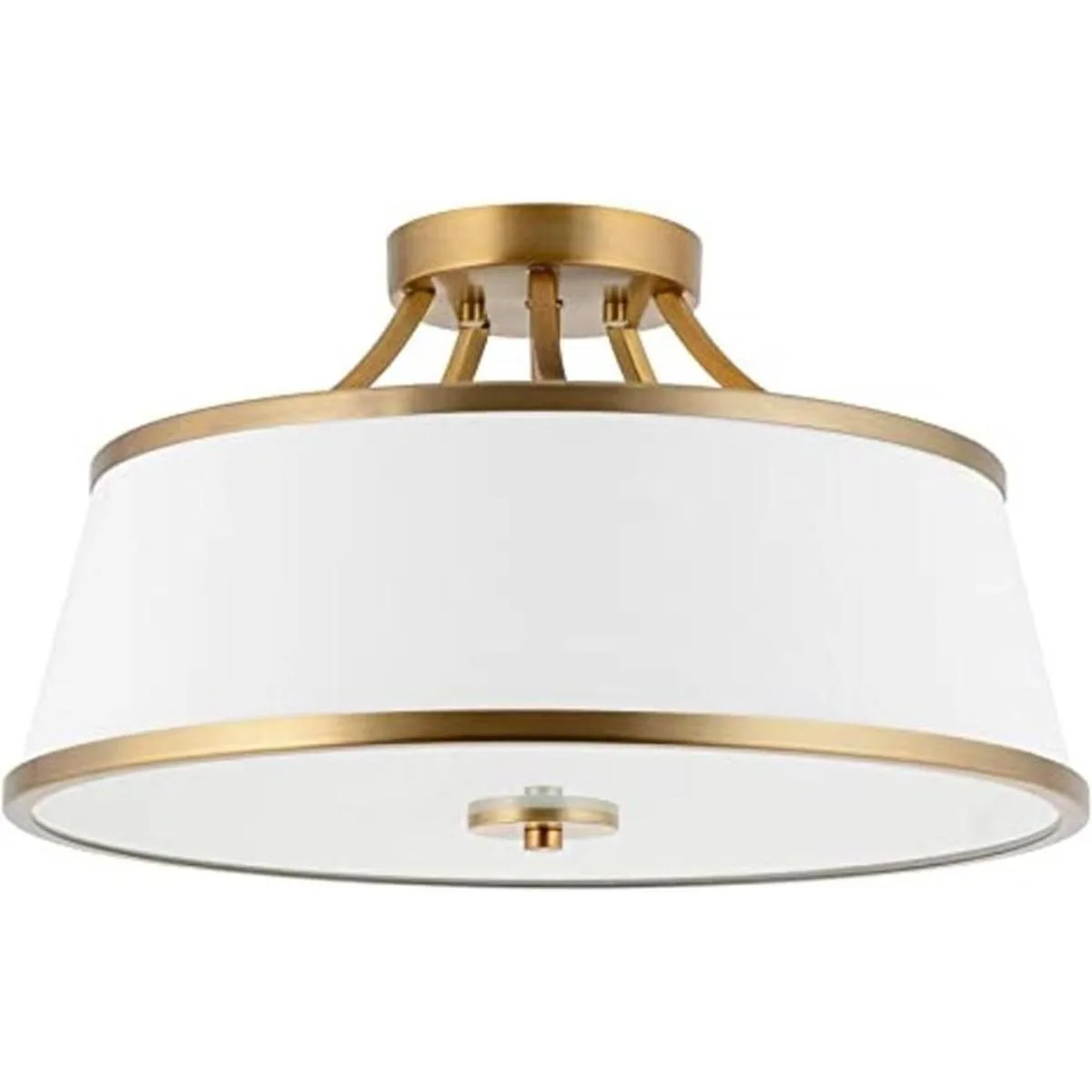 Kira Home Zoey Lámpara de techo moderna de 3 luces semiempotrada de 17.5 pulgadas pantalla de tela blanca, acabado de latón cálido