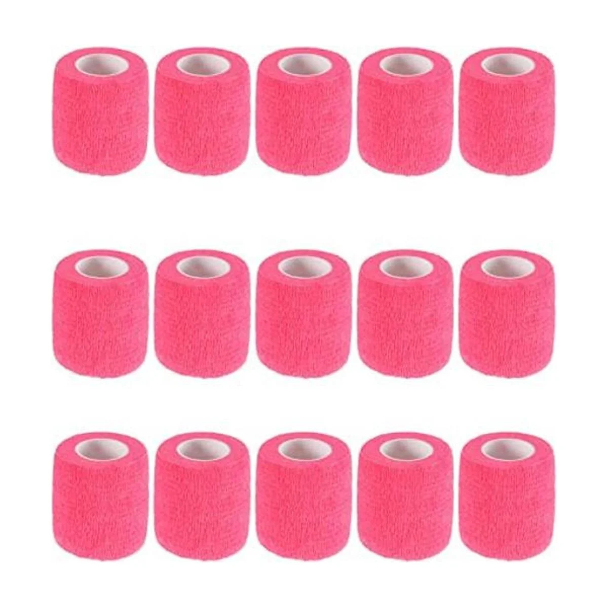 KISEER Paquete de 15 rollos autoadhesivos de 2 x 5 yardas transpirables y cohesivas vendas envolventes elásticas autoadherentes para atletismo, deportes, muñeca, tobillo rosa